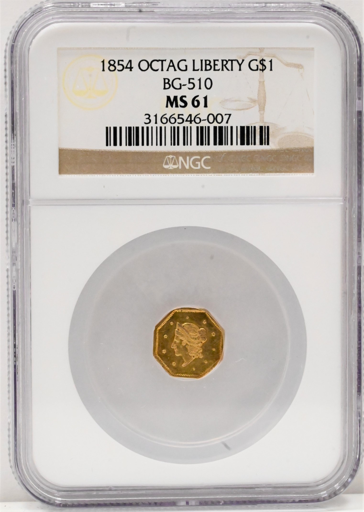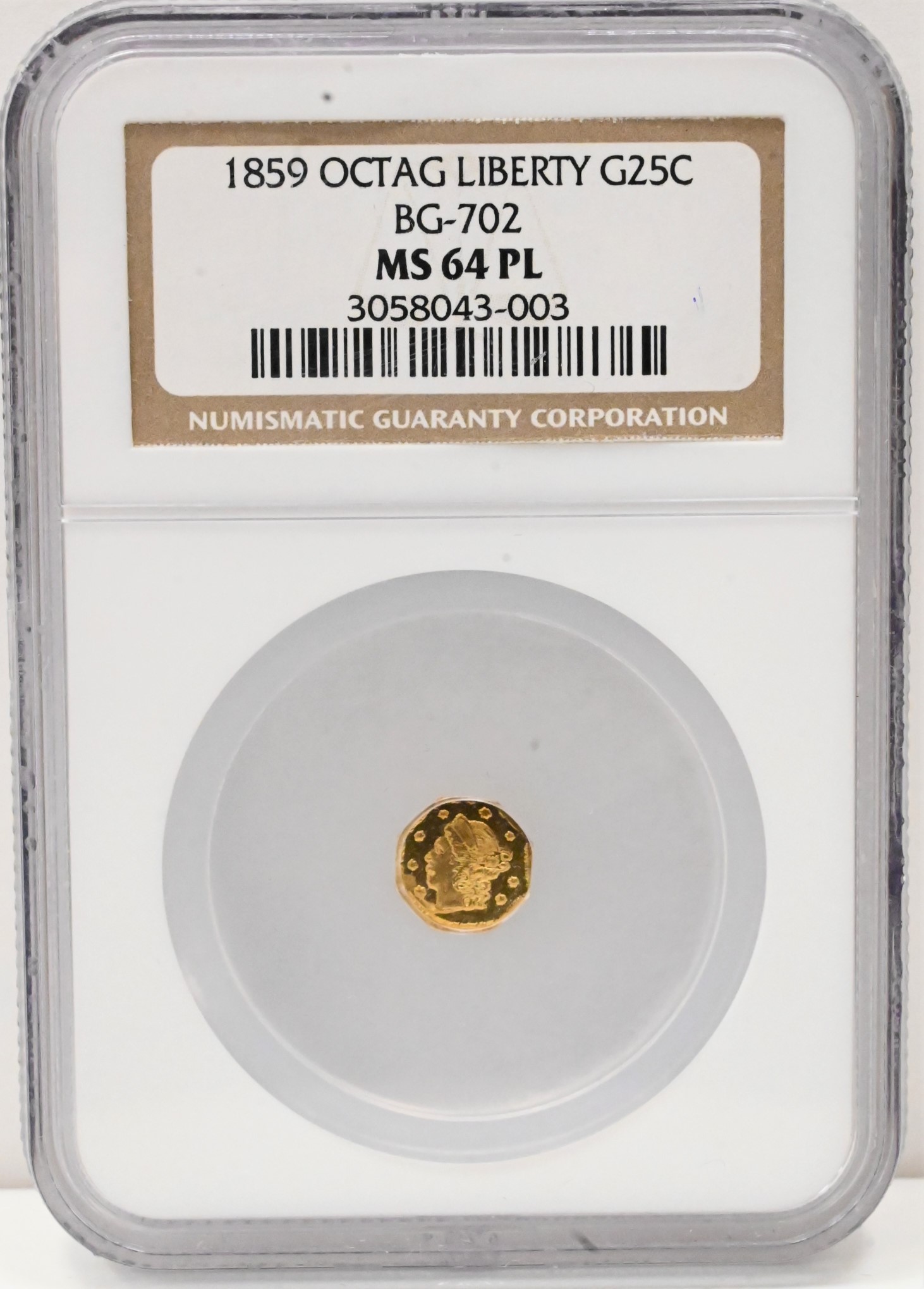 1859 NGC MS 64 PL Octagon Liberty Cal. Fractional Gold