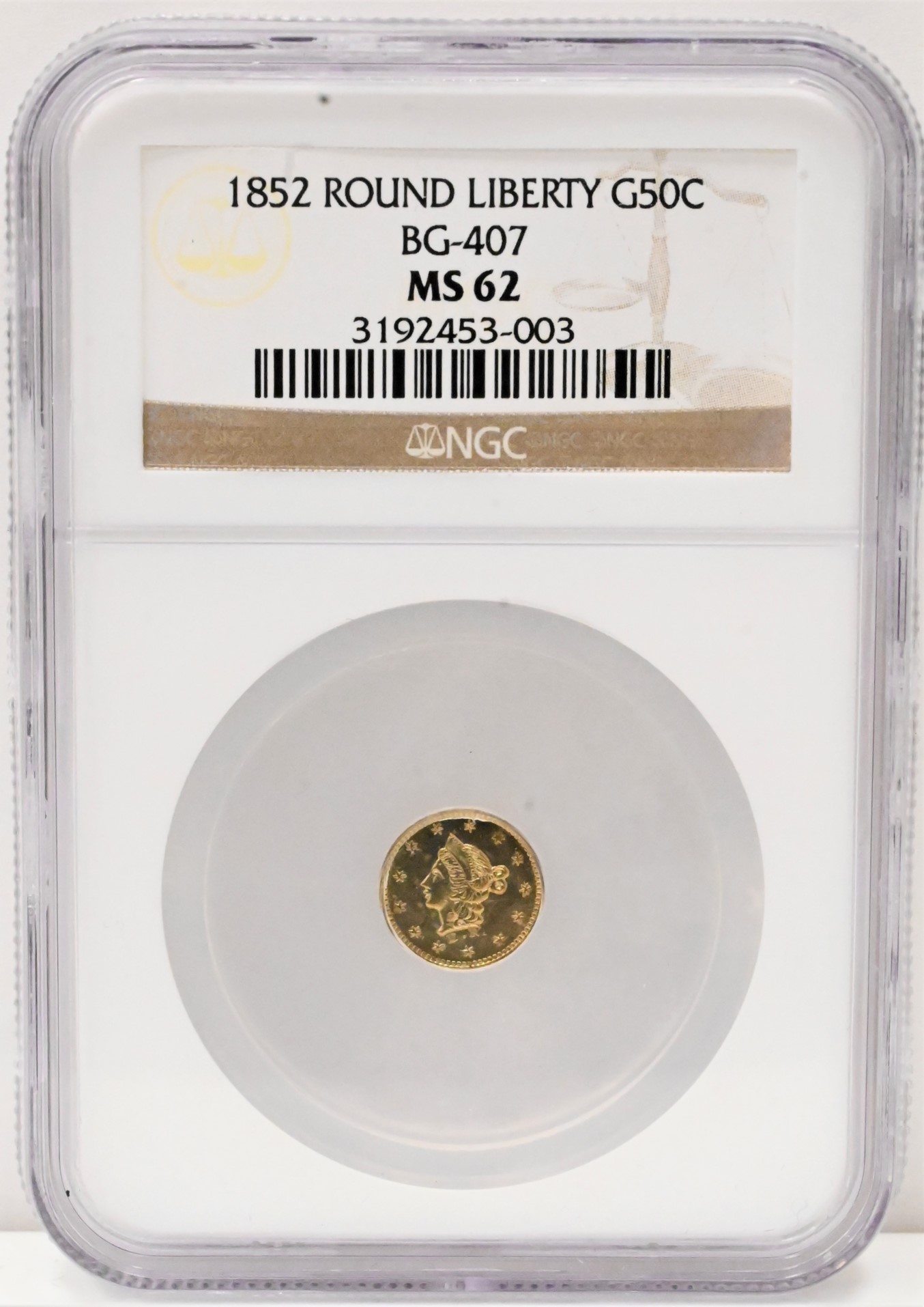 1852 NGC MS 62 Round Liberty 50 Cent Fractional Gold