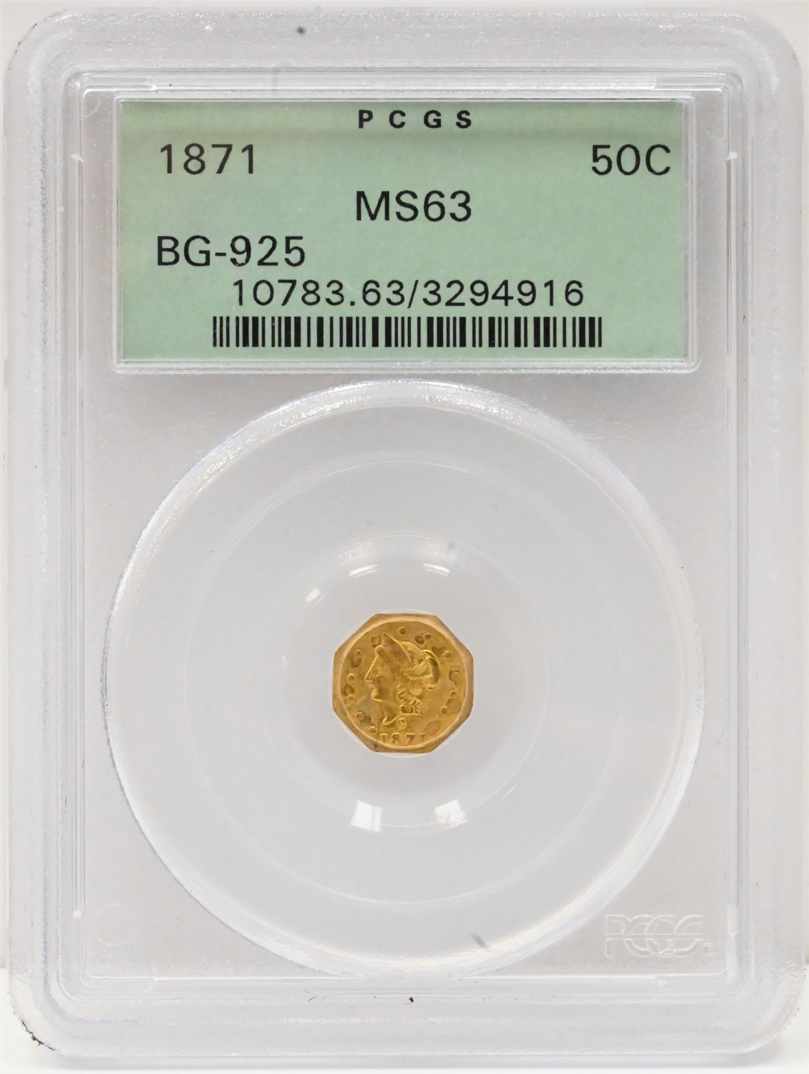 1871 PCGS Bgg 25 Cal. Fractional .50 Cent Gold