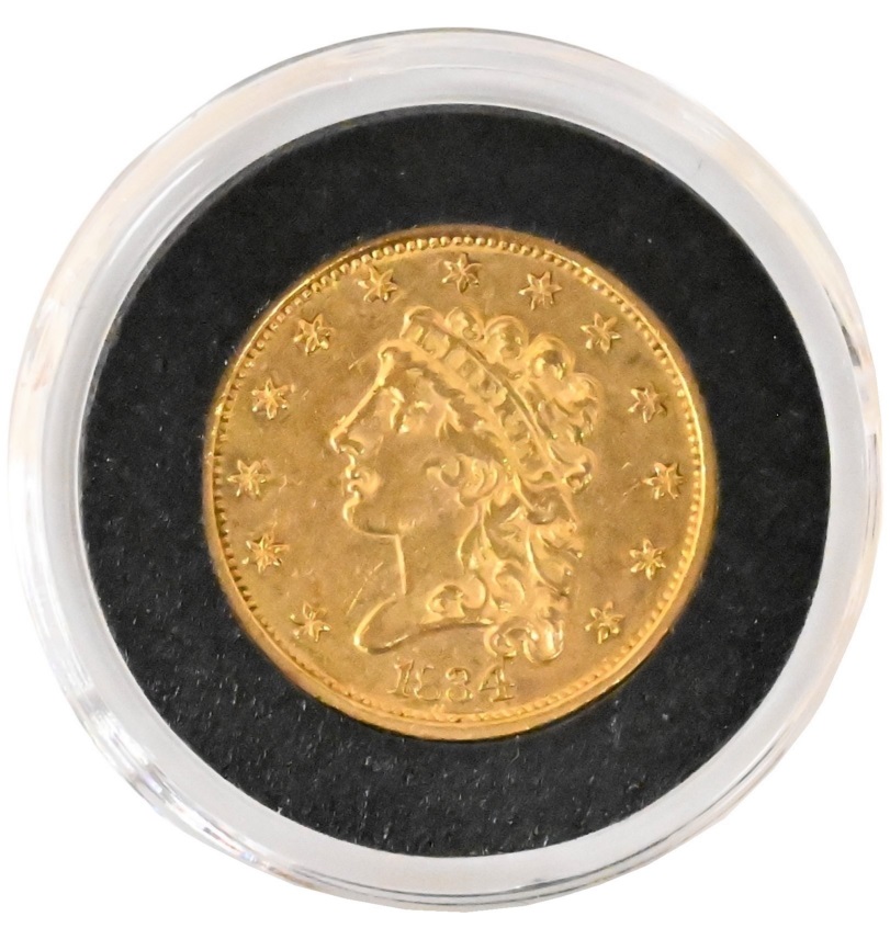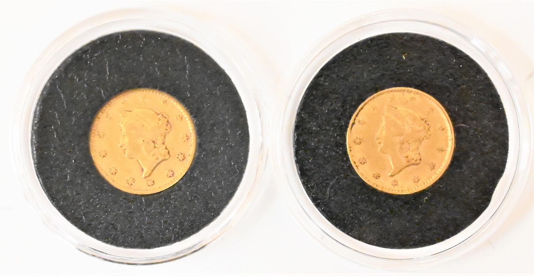Two Gold Coins, to include 1849-O one dollar gold type 1 VF/XF, along with 1853 one dollar gold type 1 unc