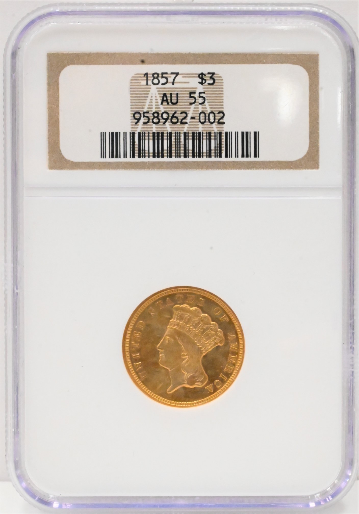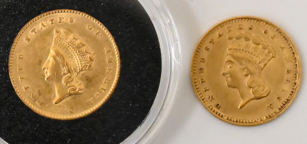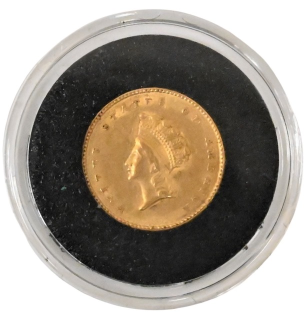Two Gold Coins, to include 1862 one dollar type 3 AU, 1855 one dollar gold type 2