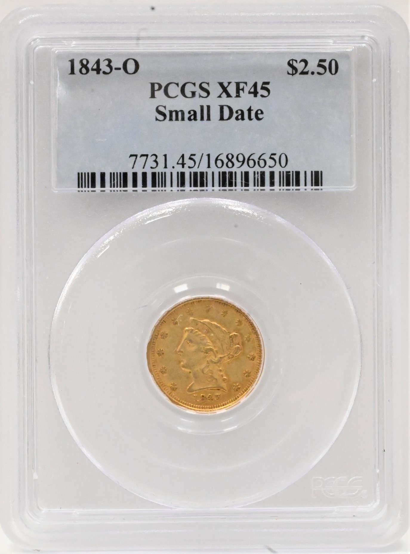 PCGS 1843-O XF 45 2 1/2 Liberty Small Date