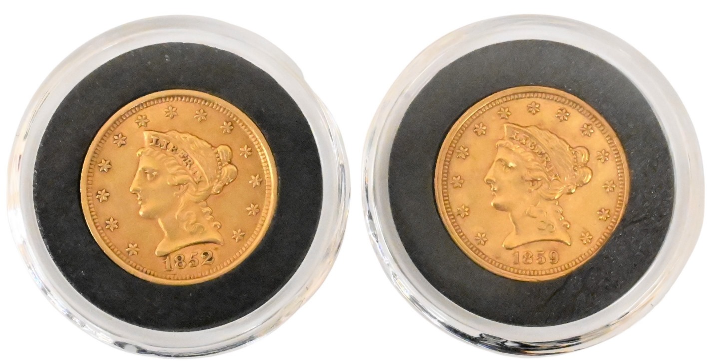 Two Gold 2 1/2 Dollar Liberty Gold Coins, to include 1859 2 ½ Liberty Gold XF
