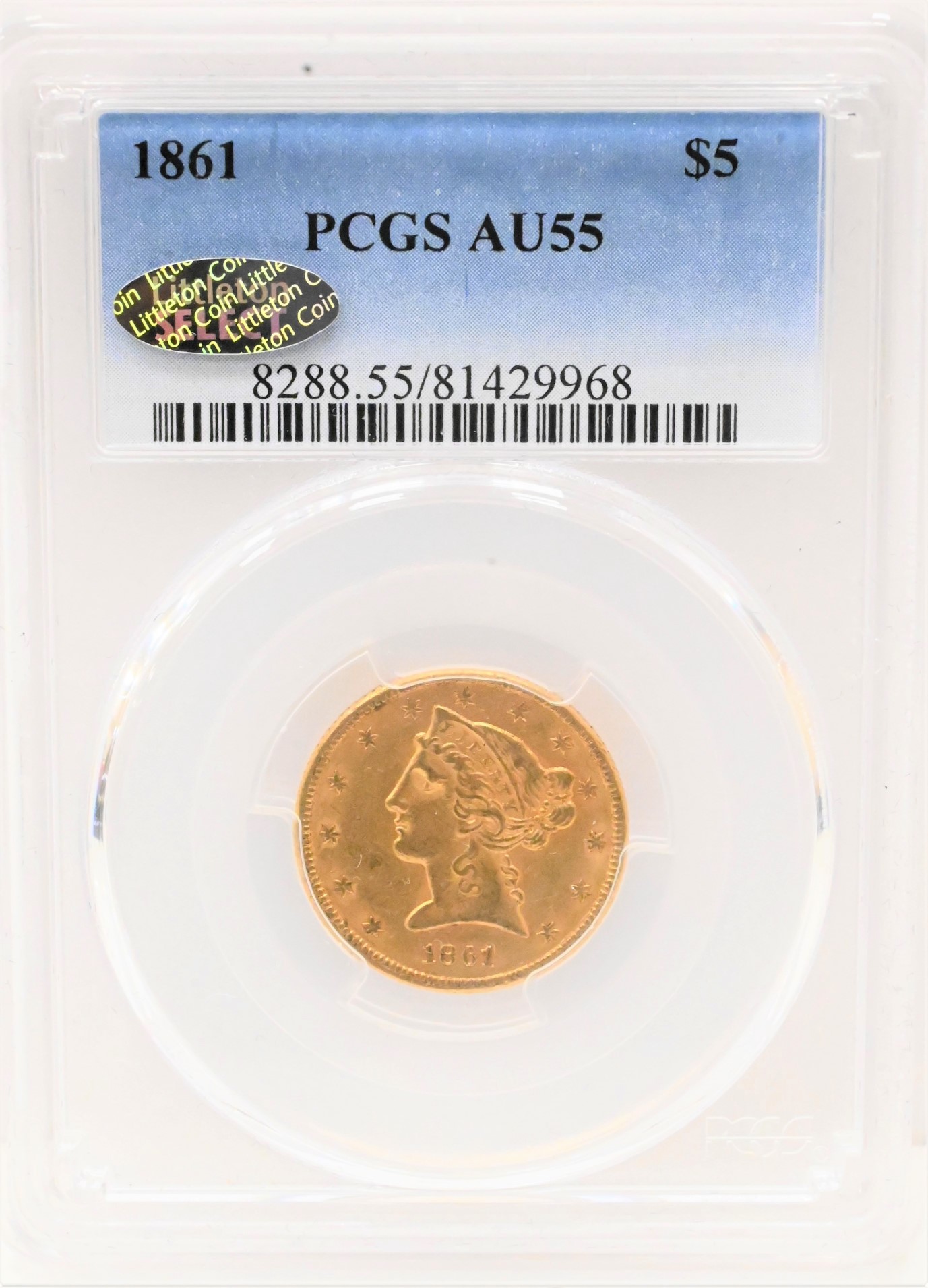 1861 PCGS AU55 Five Dollar Gold Liberty