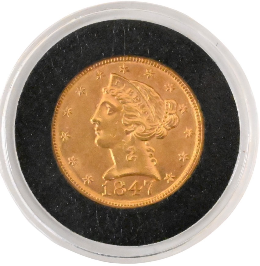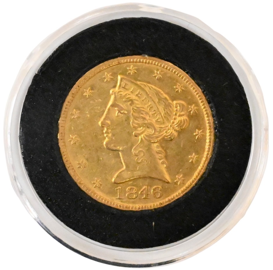 1846 Five Dollar Gold Liberty Large Date AU55 Gold