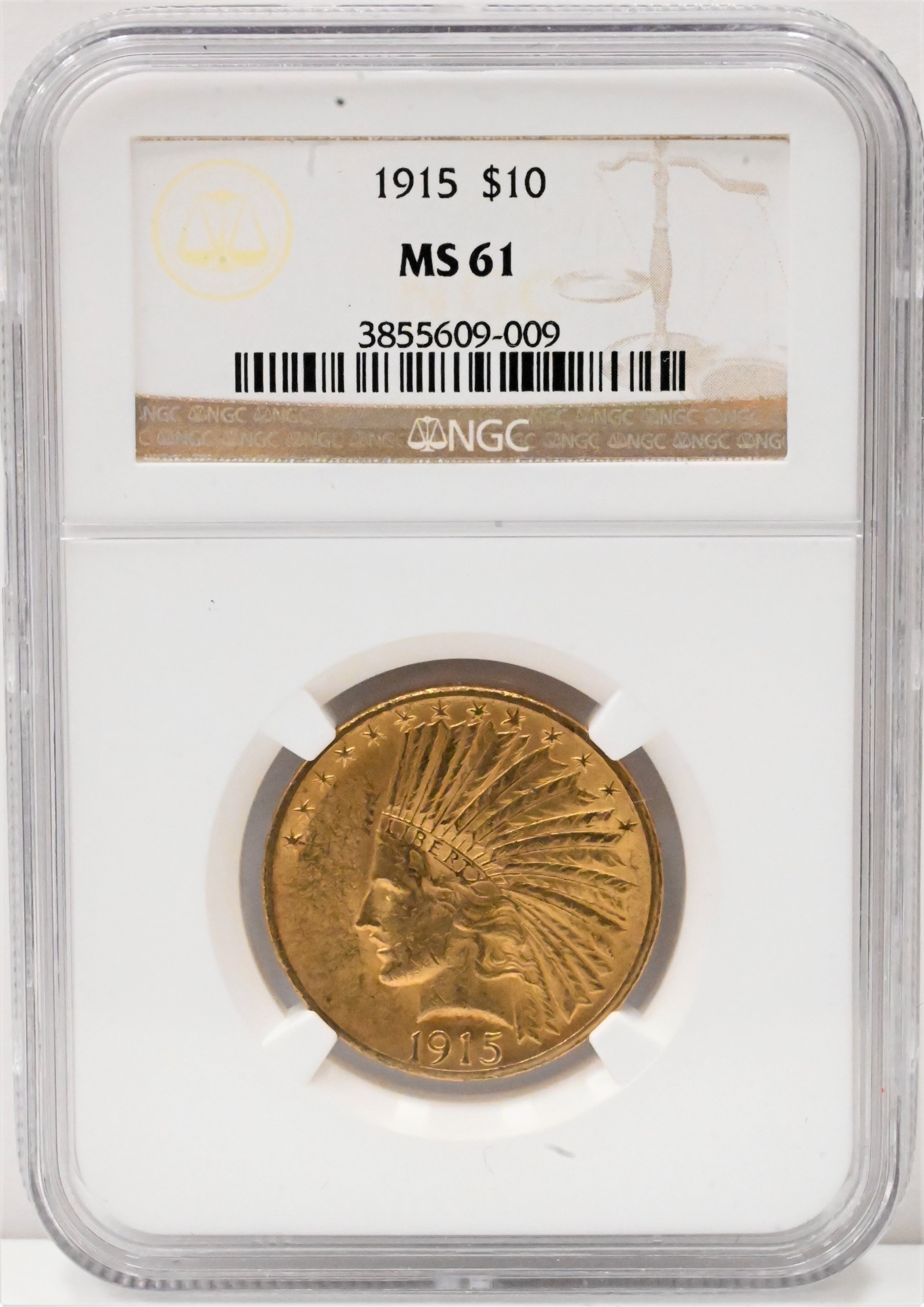 Two 1915 NGCMS61 Ten Dollar Gold Indians