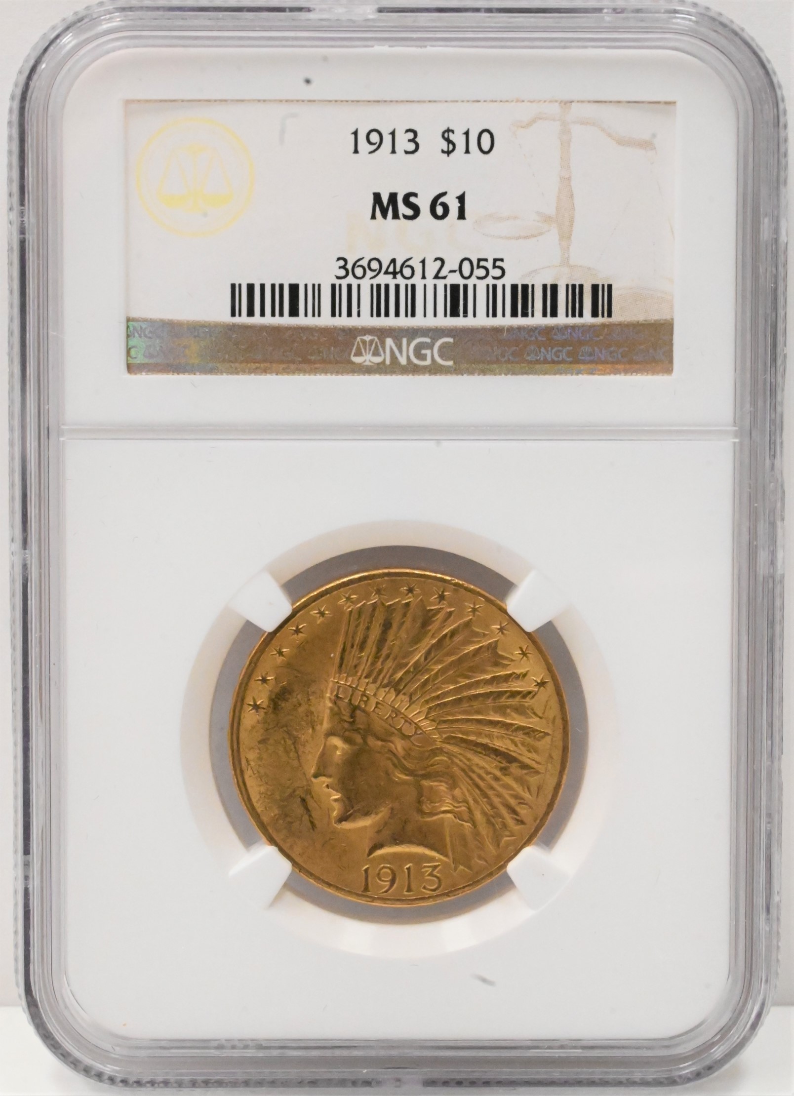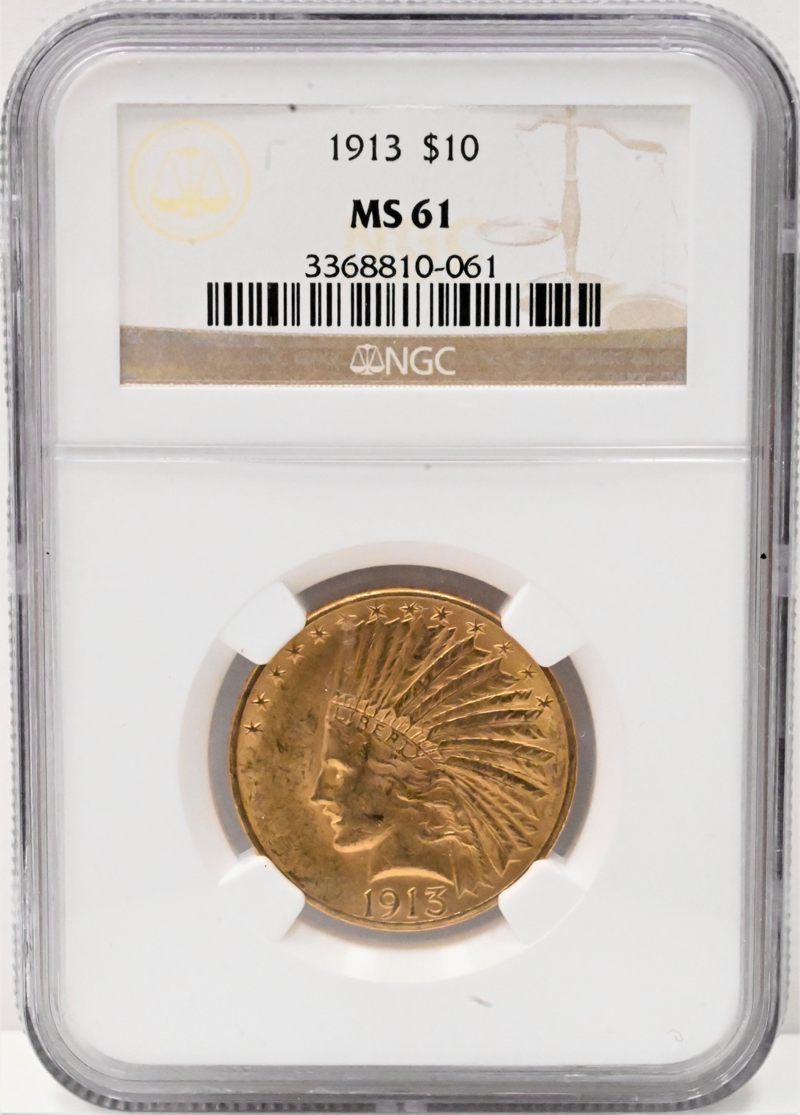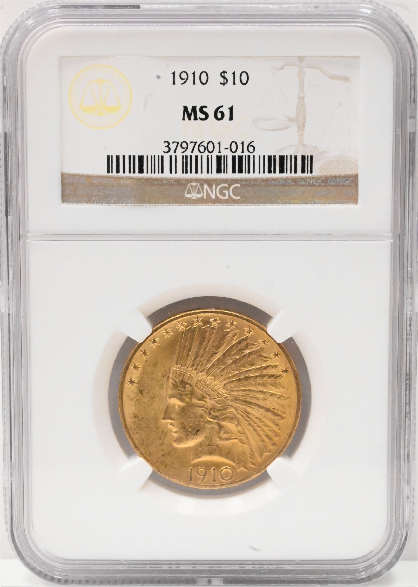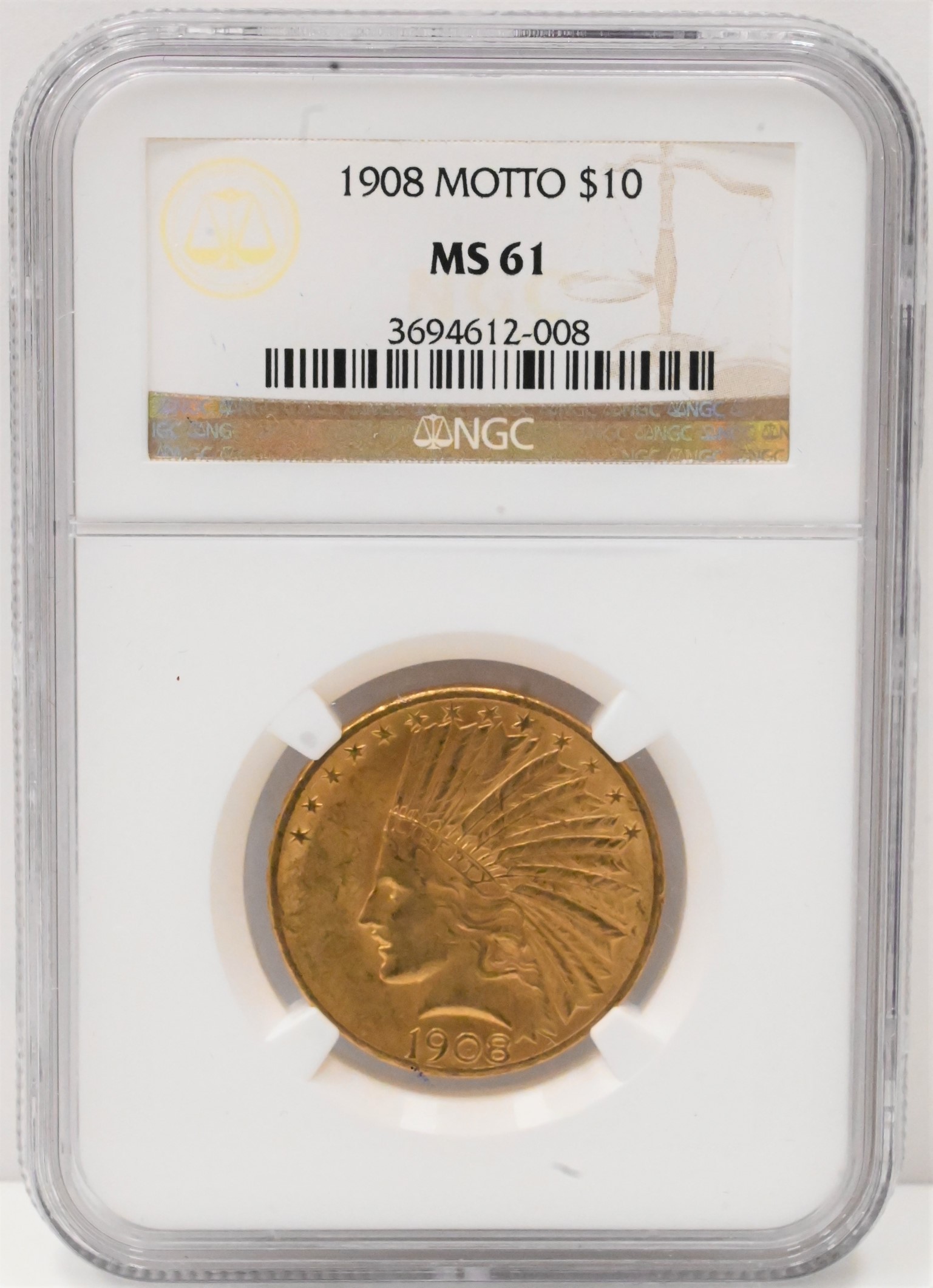 1908 NGC MS61 Motto Ten Dollar Gold Indian