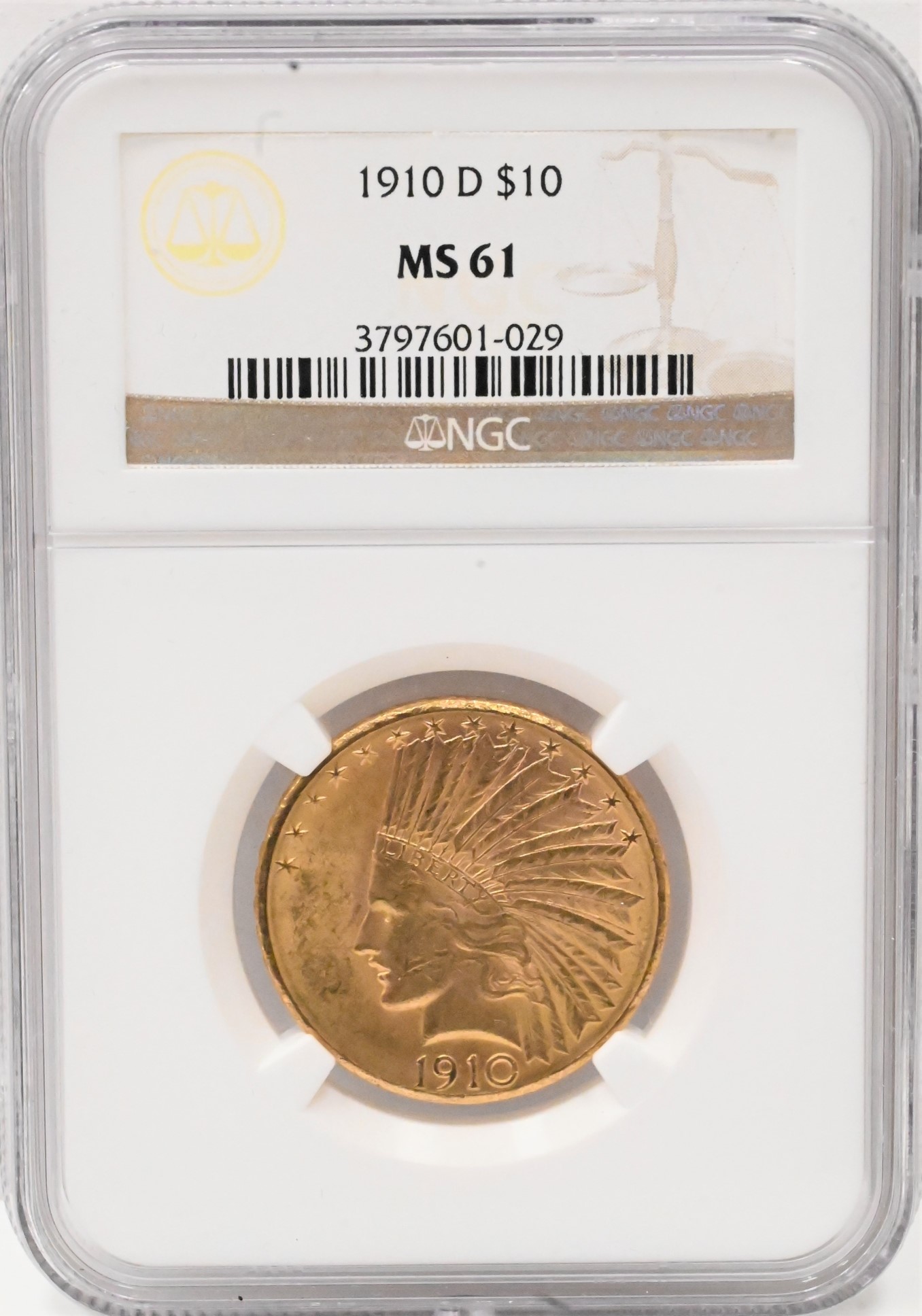 Two 1910-D NGC MS61 Ten Dollar Gold Indian