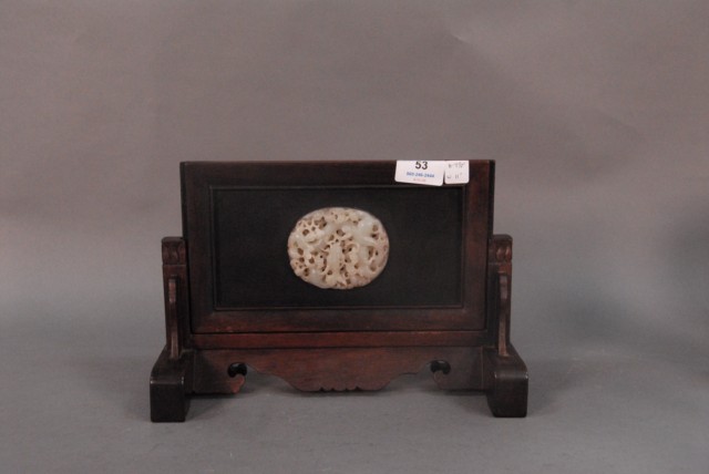 Carved white jade phoenix bird sitting on blossoming wild flowers