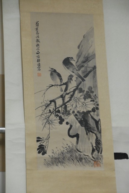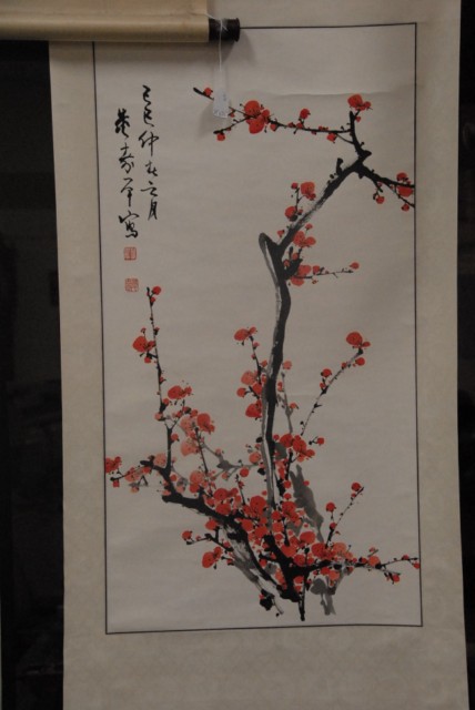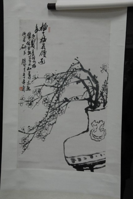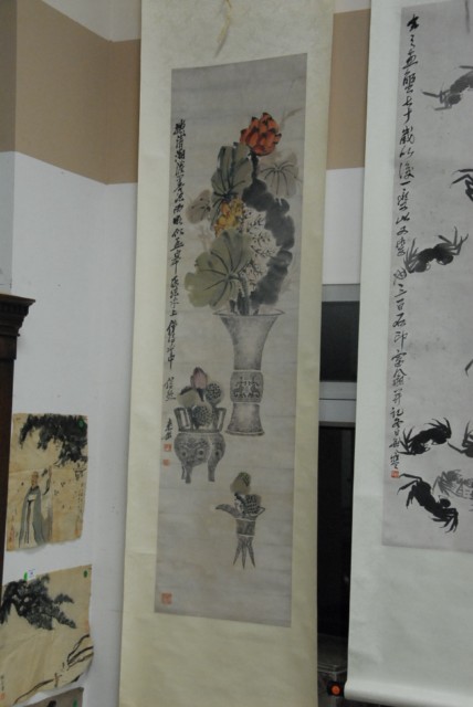 Oriental scroll with vase and flowers, Wu Chang Shuo