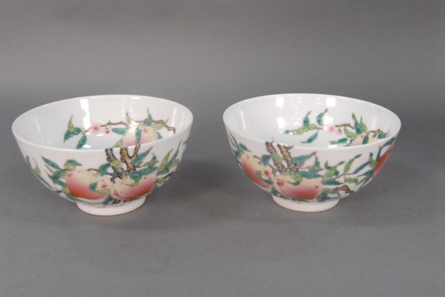 A pair of Famille Rose Eight. Peaches bowls with Yongzheng mark