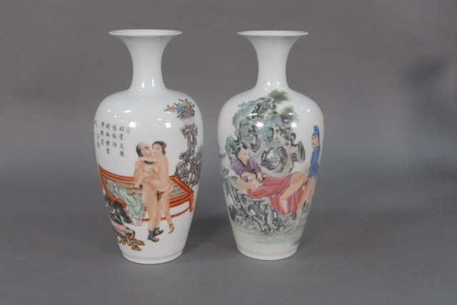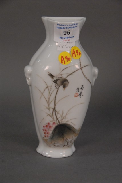 Late Qing Dynasty 19th century famille rose porcelain vase with birds and plum blossom design, signed by famous artist Cheng Yi Ting.