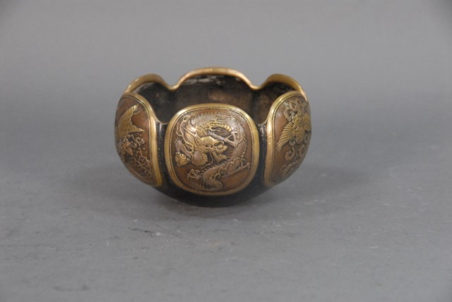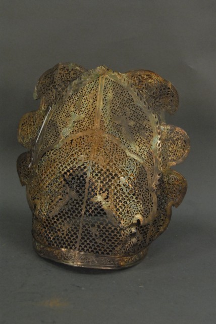 Tong Dynasty silver and gold wash phoenix bird cron, reticulated carved with phoenix birds lotus and scrolling vines, having flaming front and cloud like sides