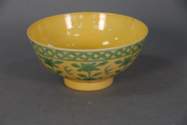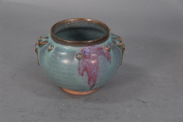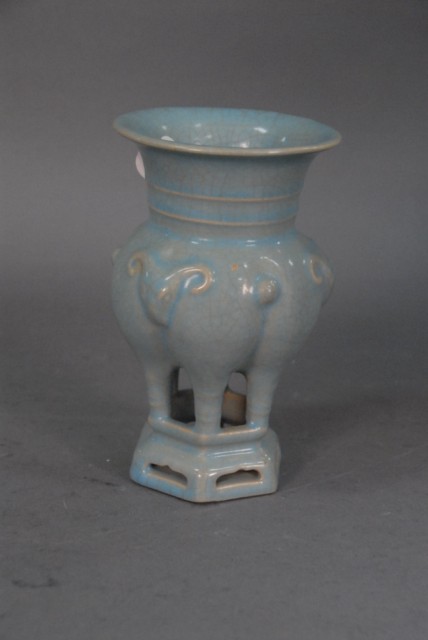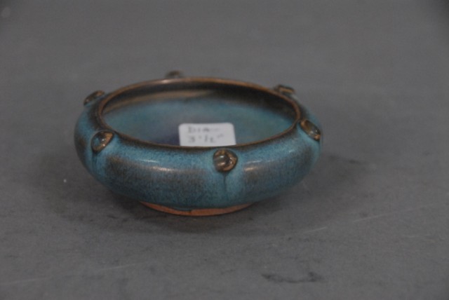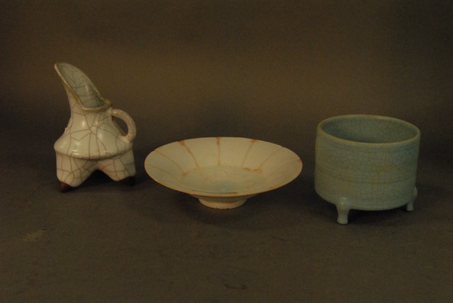 3 glazed pieces to include a white glazed porcelain bowl having incised decoration in center, a white crackled glazed 3 footed vessel and a crackle glazed 3 footed pot
