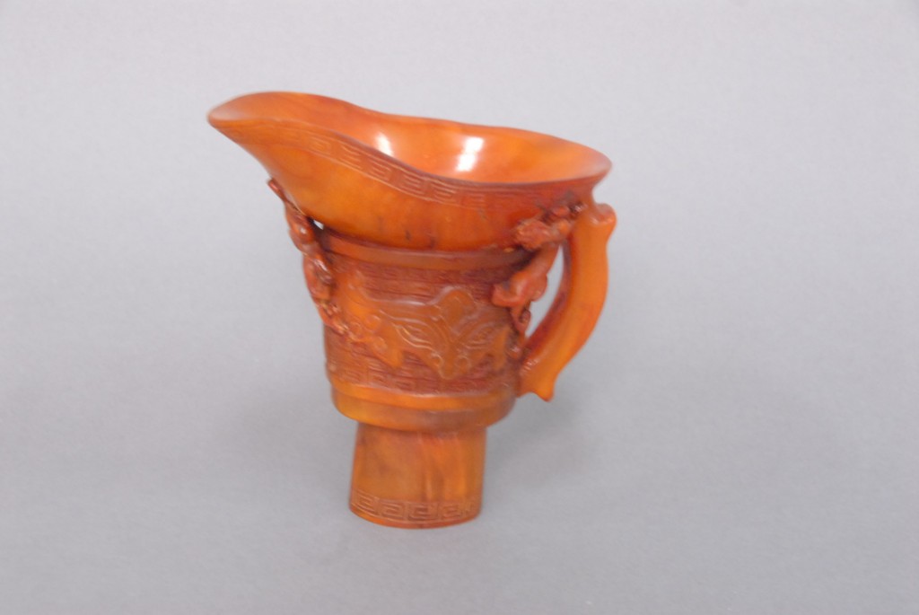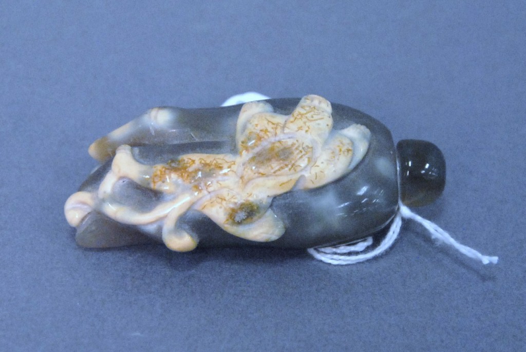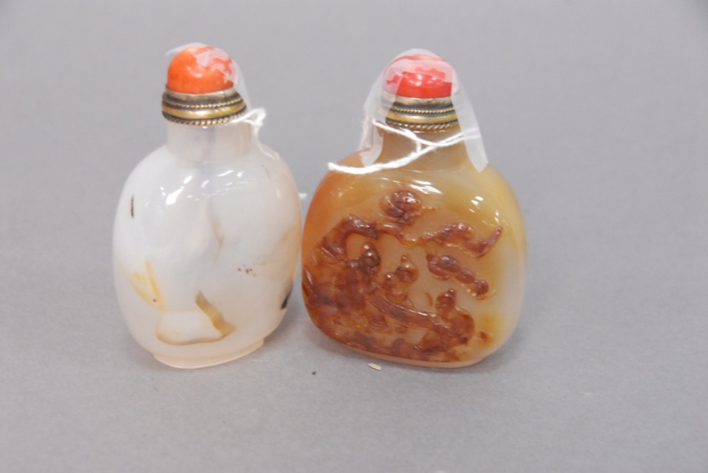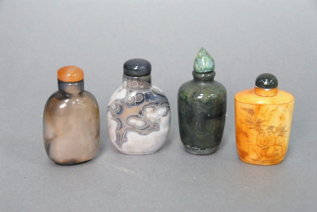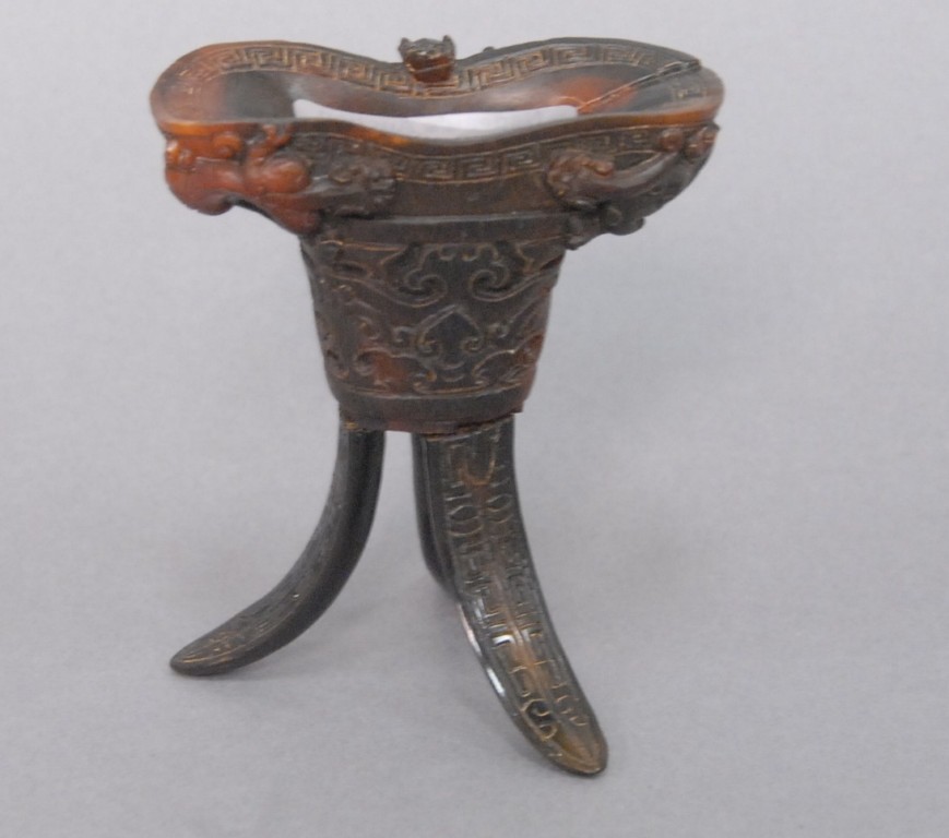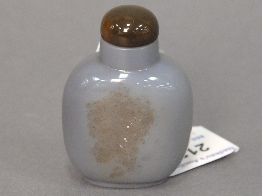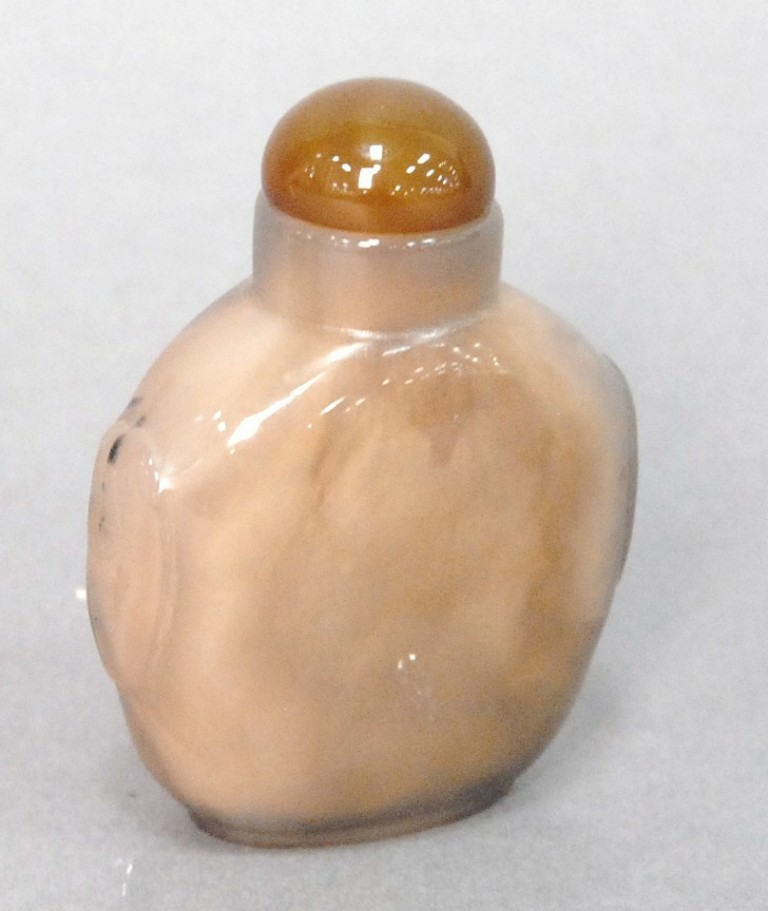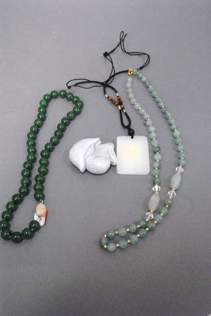 Celadon jade bronze form vase, flattened tapering vase, front carved in relief with a guanyin standing beside a small boy, and both holding a lotus stem, and on the reverse a guanyin holding a peach branch and a lingzhi carved in high relief form, the sides carved with undercut crawling dragon handles, along with a 2 stand, ht. of vase 8 1/2 no top. Provenance: Sold at Sotheby’s June 2 & 3, 1976, Chinese snuff bottles, jade, ceramics, and works of art, sale # 275 1200.