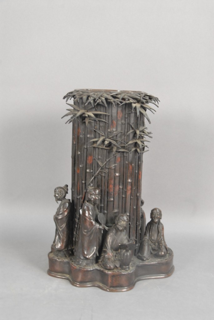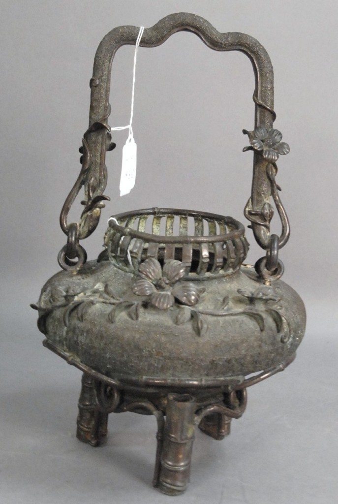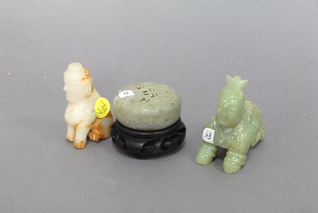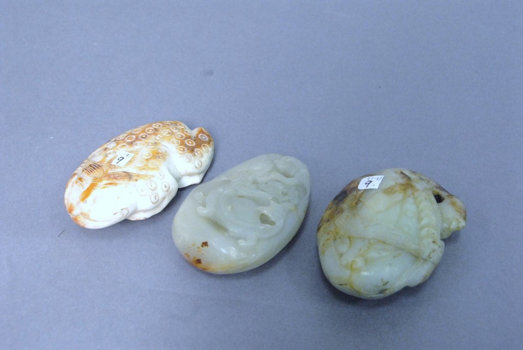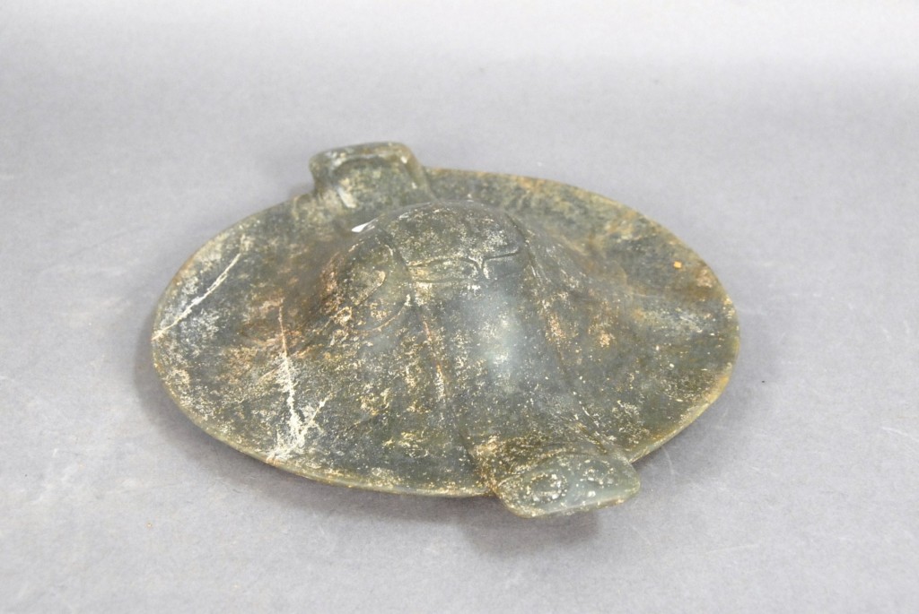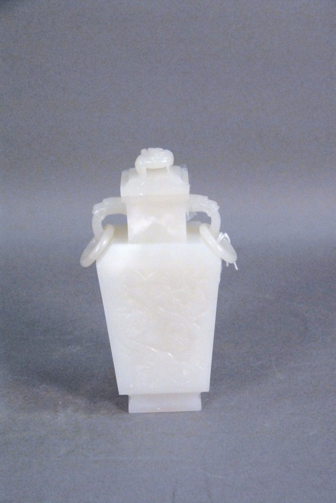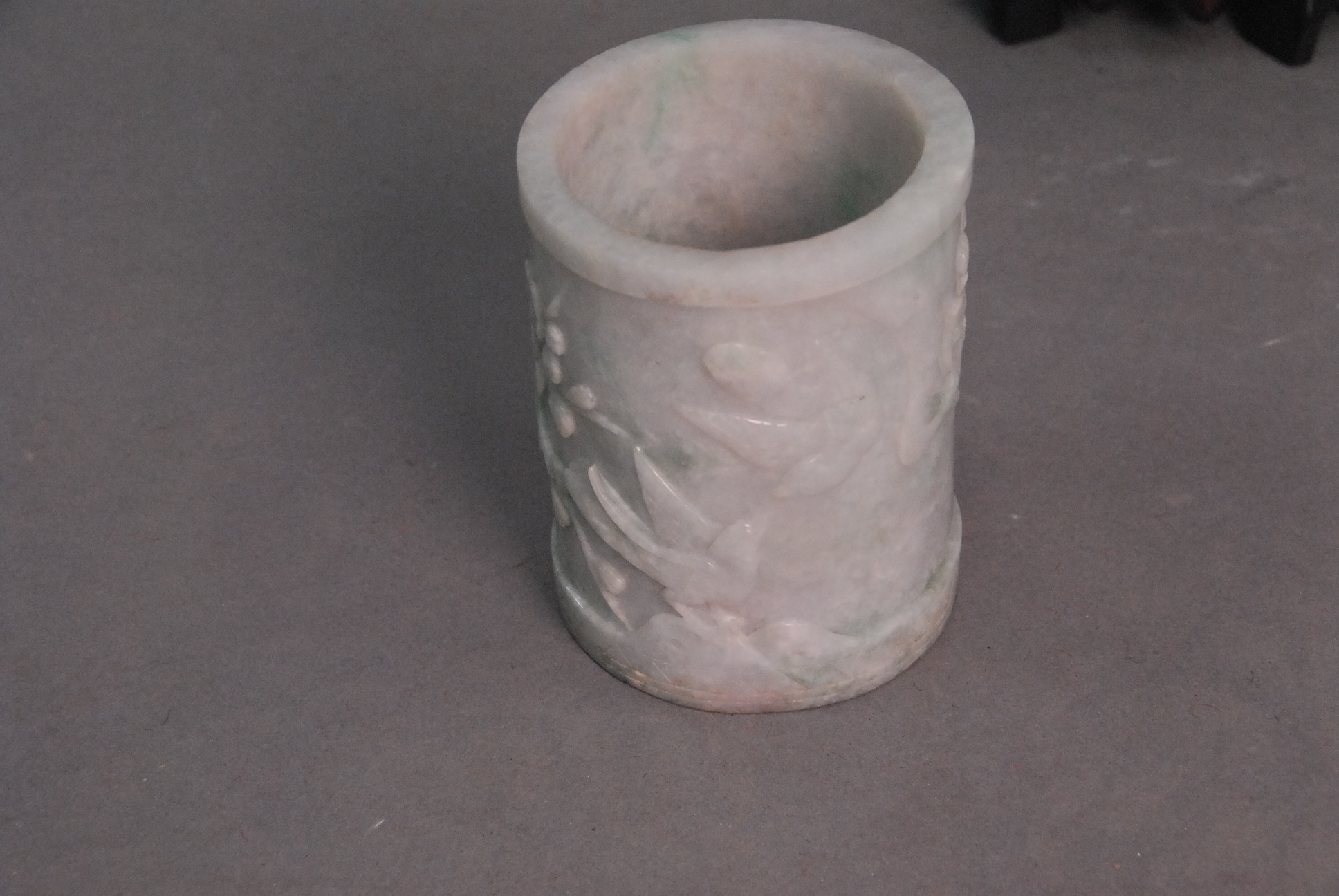 White to light green jade table screen, rectangle upright panel, exquisitely carved in relief mountainous landscape depicting two sages conversing on a narrow bridge over a stream, the reverse having two cranes, bats, flowering branches and a pine, along with a wood stand, jade: 10 3/8 x 7, probably 19th century. Provenance: Sold by Sotheby’s March 18 & 19, 1977, from Mr. and Mrs. Henry J. Heinz II Collection, paid 3200, comes with the 1977 catalog, total height 14 1/2.