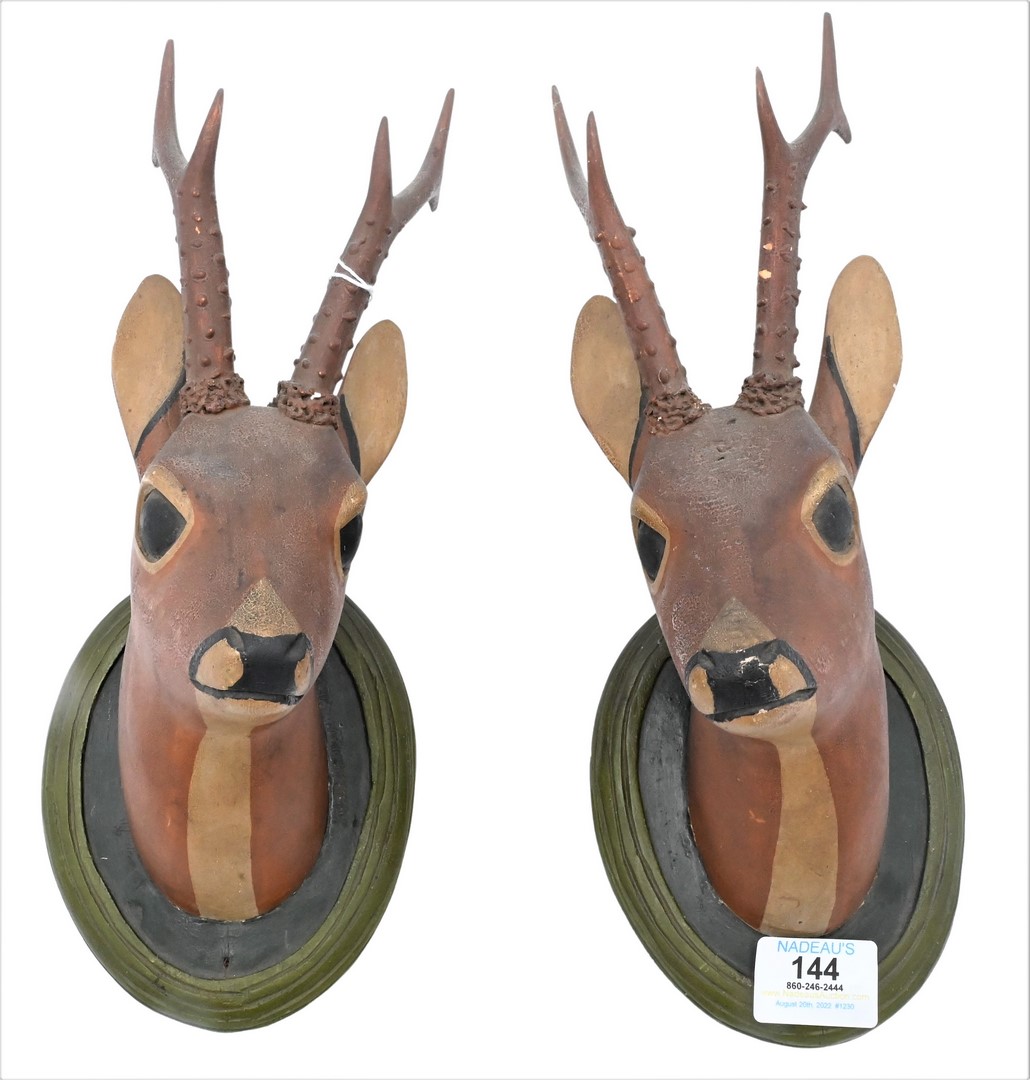 Seven Greg Shooner Redware Pottery Covered Jars, painted in Early American manner, all signed on the bottoms, tallest 10 inches. Provenance: Estate of Peter Tillou, Litchfield, Connecticut.