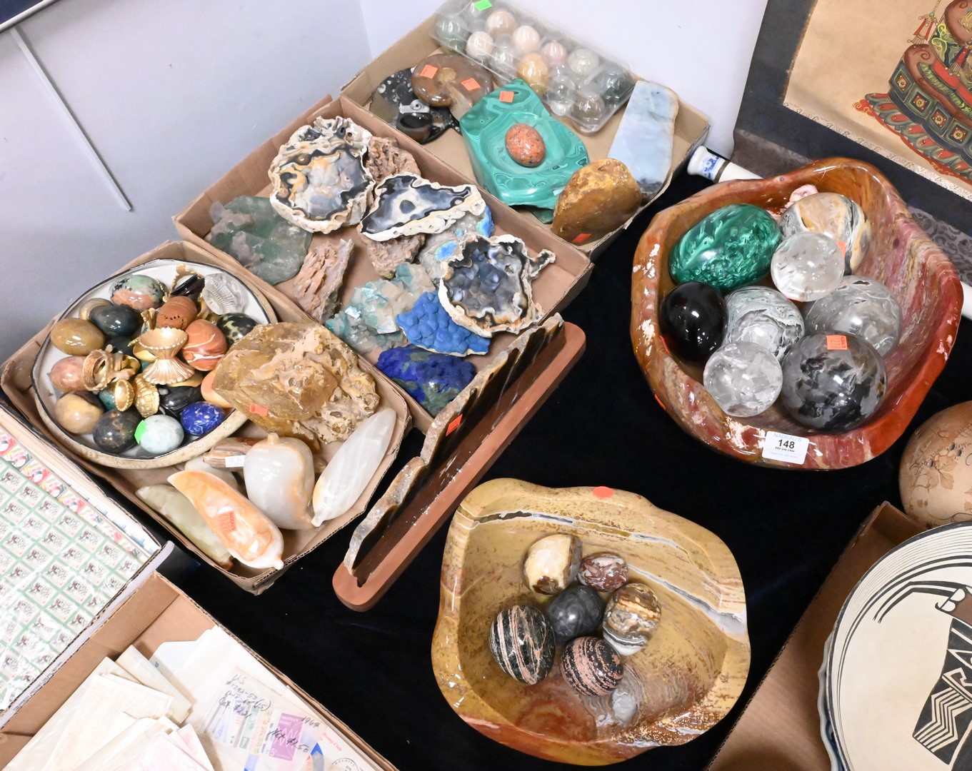 Large Group of Stone, to include polished balls, bowls, minerals, agate, along with malachite, etc. Provenance: Estate of Peter Tillou, Litchfield, Connecticut.