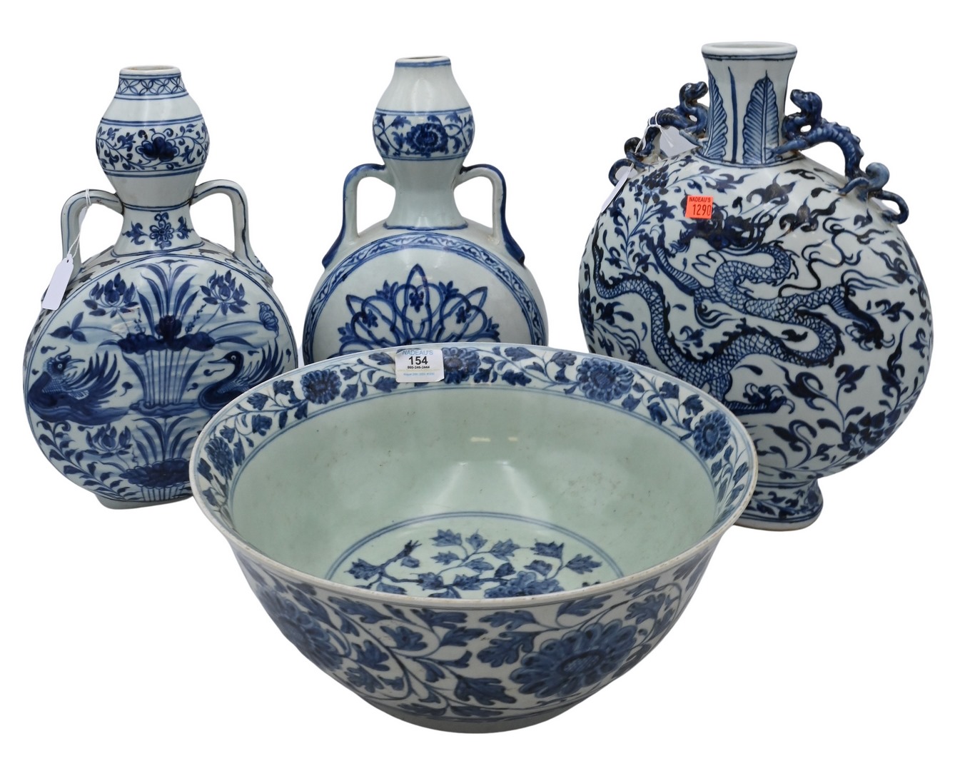 Ten Piece Chinese Porcelain Group, to include moon flask, pair of fish jars,meiping vase, tall jar with cover, chargers, etc., tallest height 16 inches.