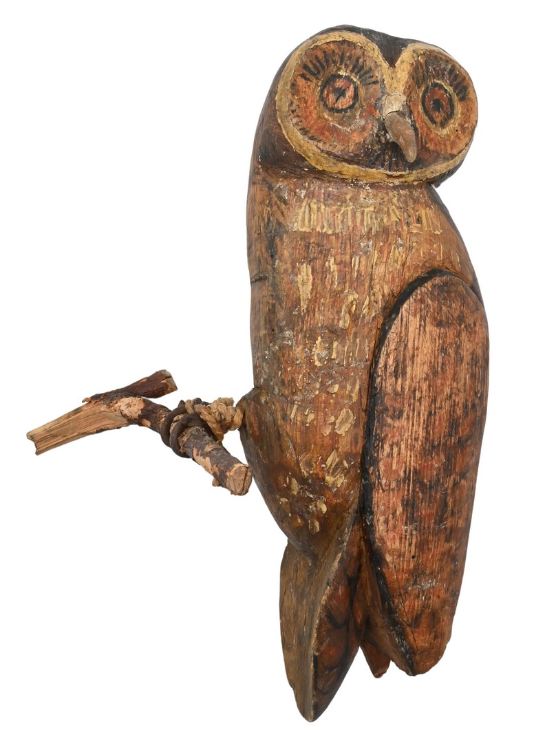 Group of Seven Carved and Painted Fish, to include five decoys, along with two primitive painted planks mounted with half fish, pike, trout, etc.; longest 19 1/4 inches. Provenance: Estate of Peter Tillou, Litchfield, Connecticut.