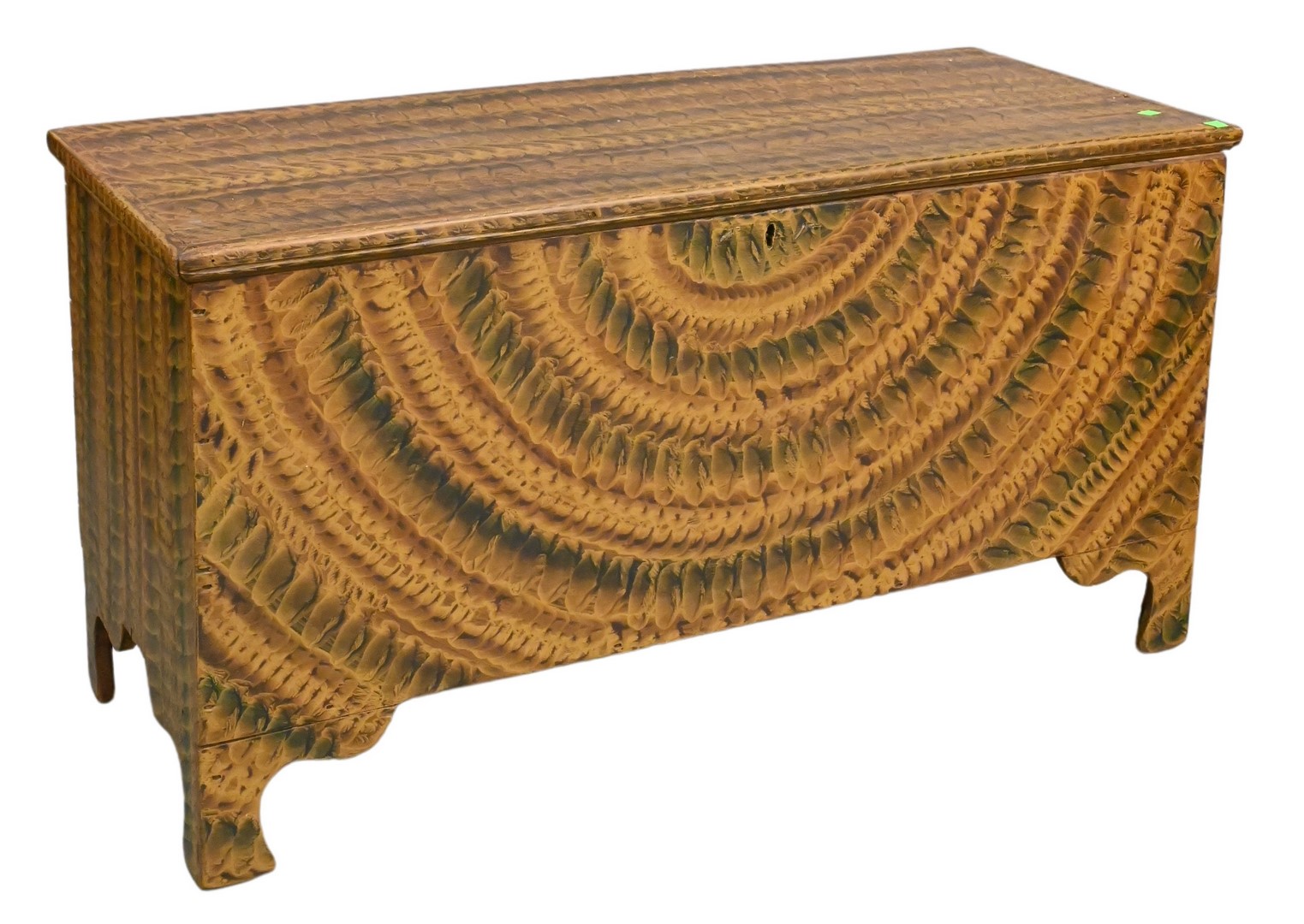 Chippendale Lift Top Chest, smokey grain paint decorated, late 18th century, height 23 inches, top 17 1/2″ x 44″. Provenance: Estate of Peter Tillou, Litchfield, Connecticut.