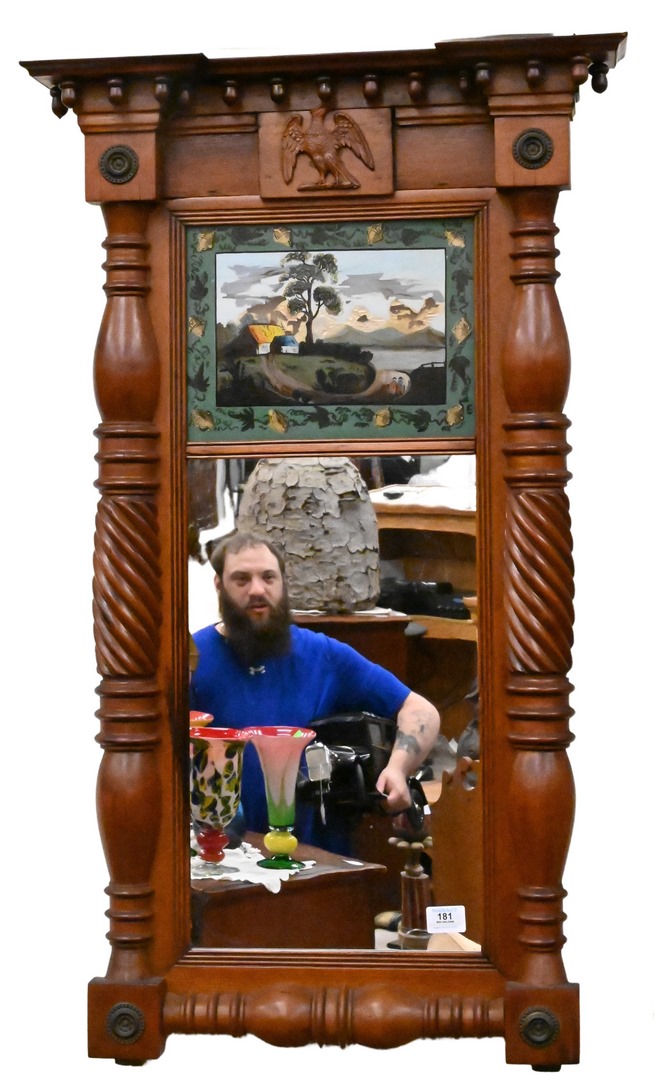 Sheraton Mahogany Drop Leaf Table, having Acanthus carved legs and one drawer, along with a side chair, circa 1830, height 28 1/2 inches, closed top 23″ x 39″. Provenance: Edwin C. Alberg, New Haven, Conn., 1938; sold to Olive Louise Dann (1880–1961), New Haven, Conn., probably November 19, 1938; by bequest to Yale University Art Gallery, New Haven, Conn., 1961