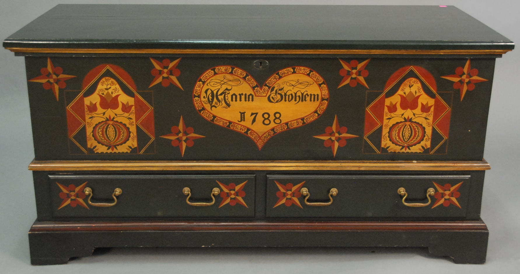 Reproduction Pennsylvania style chest with lift top and two drawers, lg. 48.