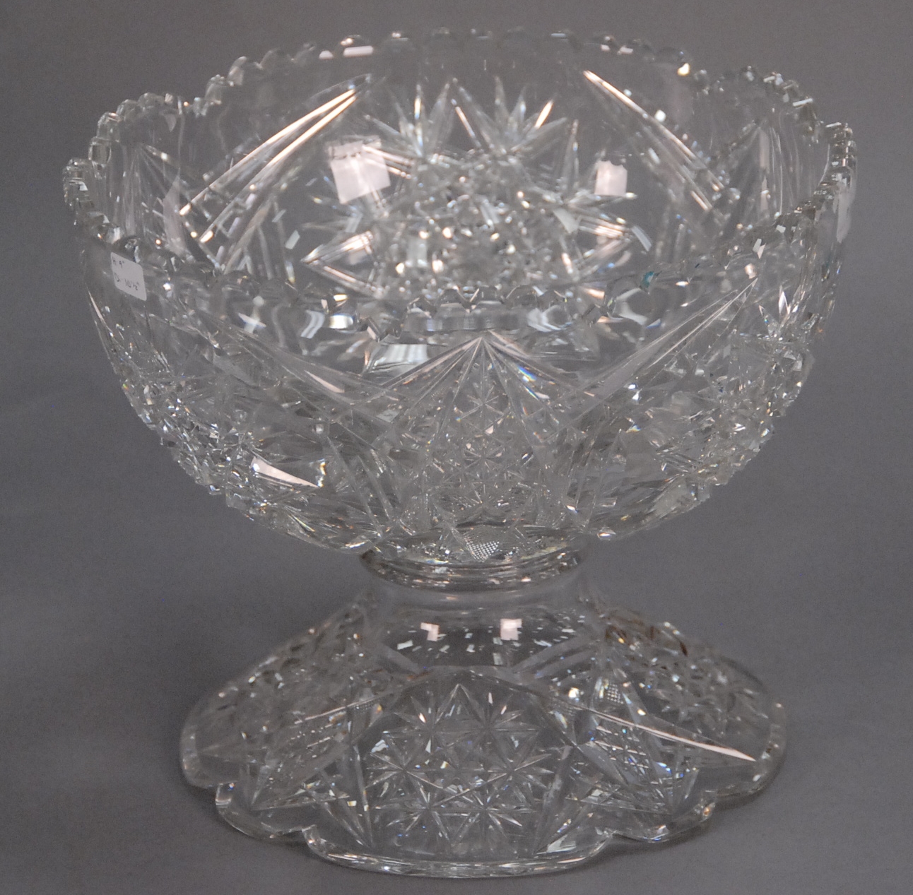 Cut glass two part punch bowl, ht. 9 dia. 10 1/2.