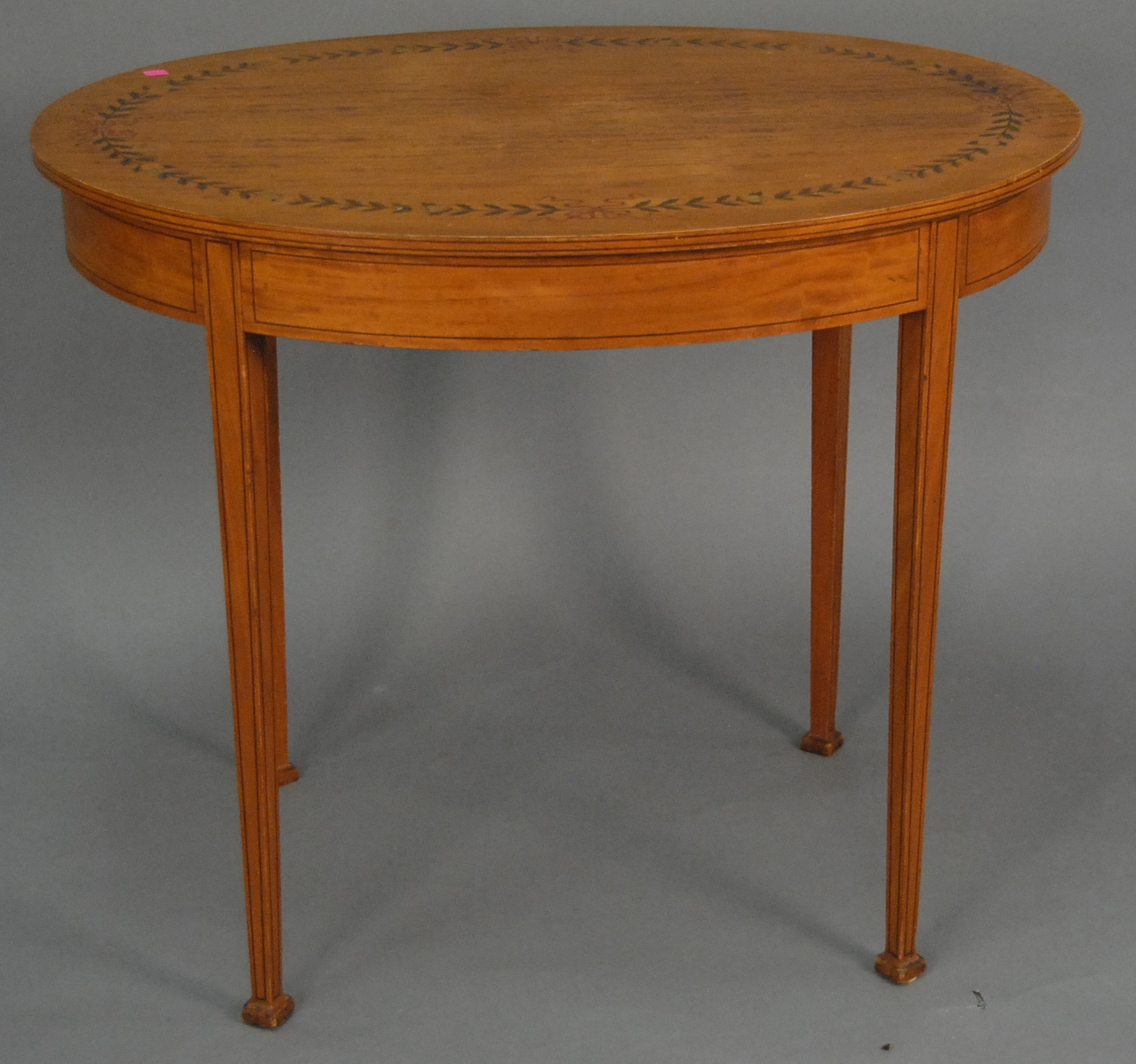 Edwardian style oval table with inlaid top, ht. 30, top: 27 x 36.