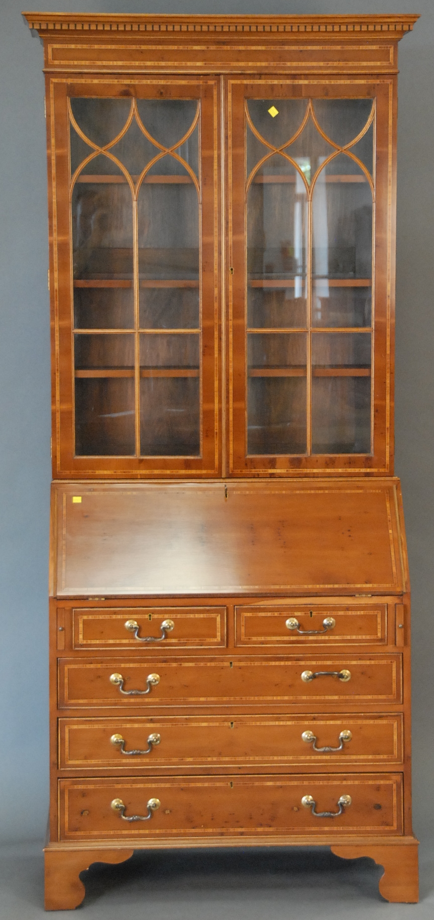 Contemporary secretary desk in two parts, ht. 85 in. wd. 34 in. dp. 10 in.