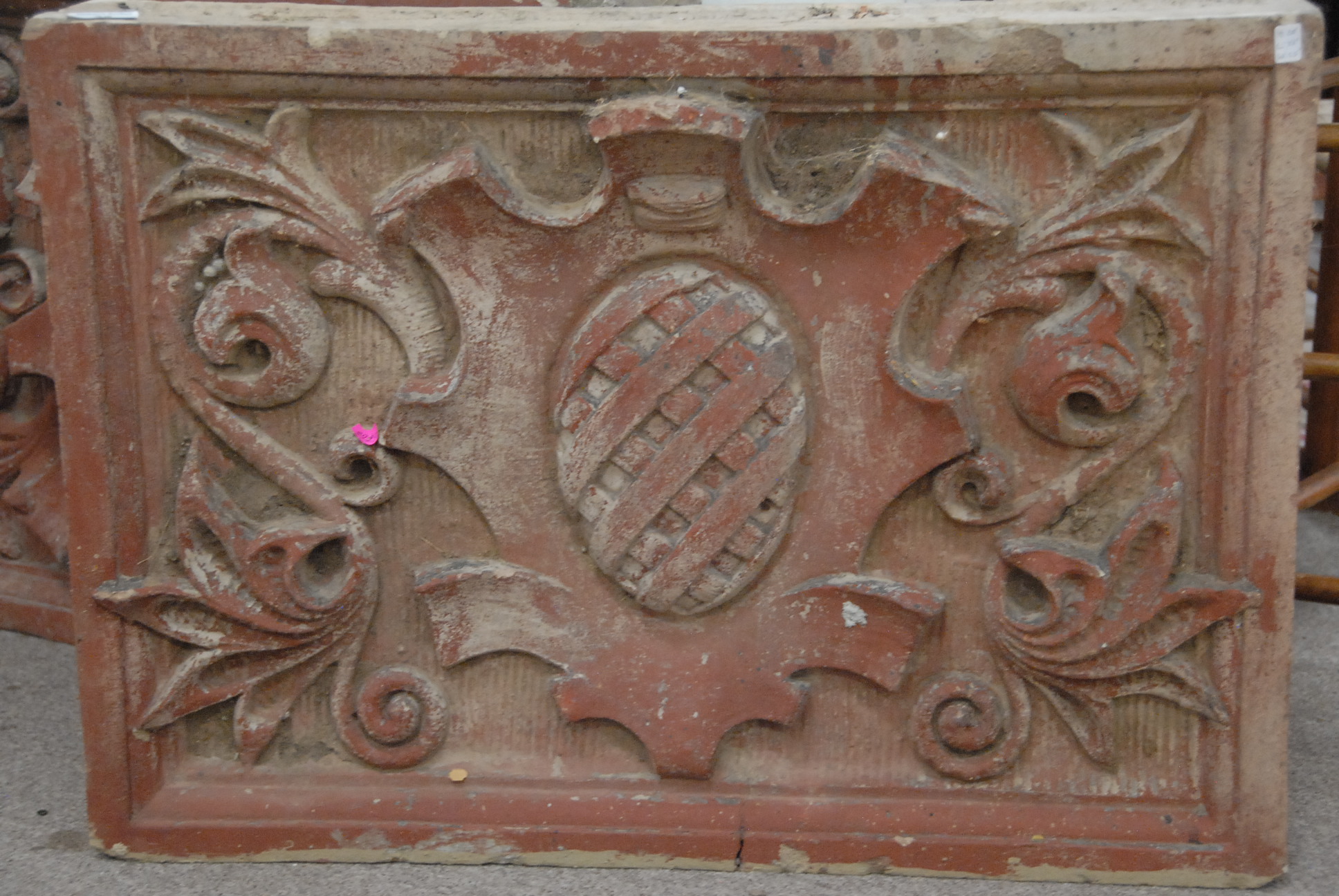 Pair of large cement molded red painted blocks, ht. 20 in. wd. 28 in.
