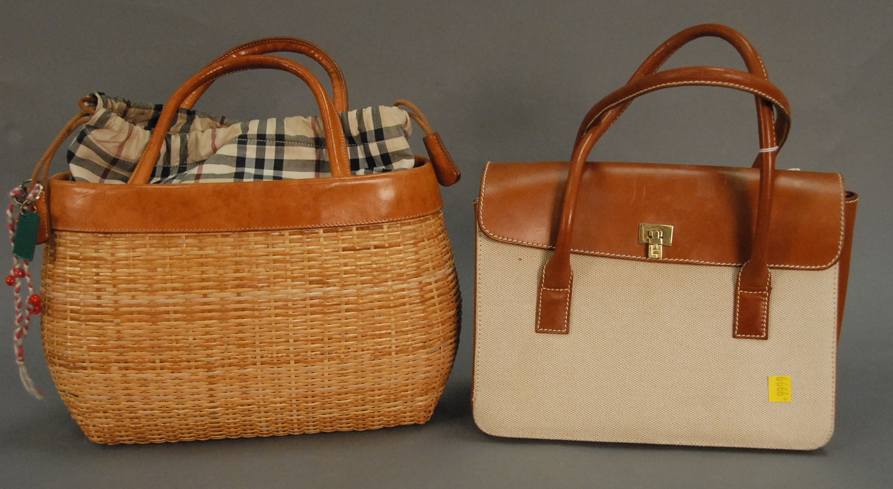Two purses including a Burberry wicker handbag and Lambertson Truex cloth and leather bag.
