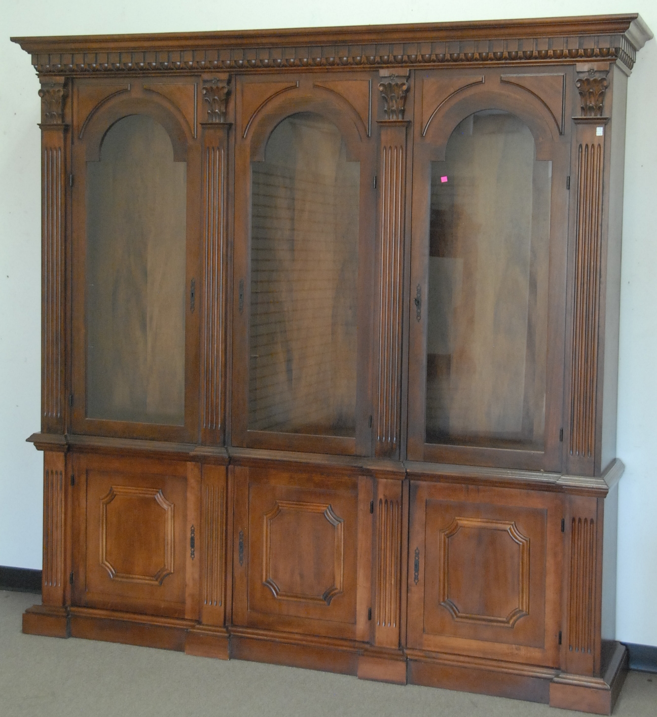 Custom two part breakfront/bookcase, ht. 100 in. wd. 91 1/2 in. dp. 18 in.