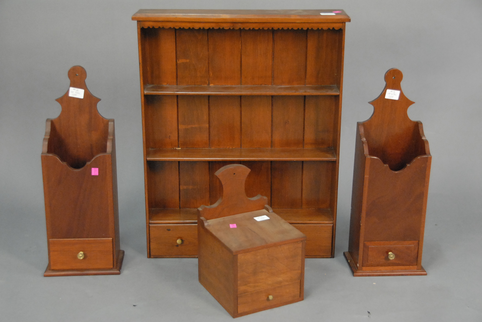 Four piece lot with two pipe boxes, hanging shelf, and lift top box.