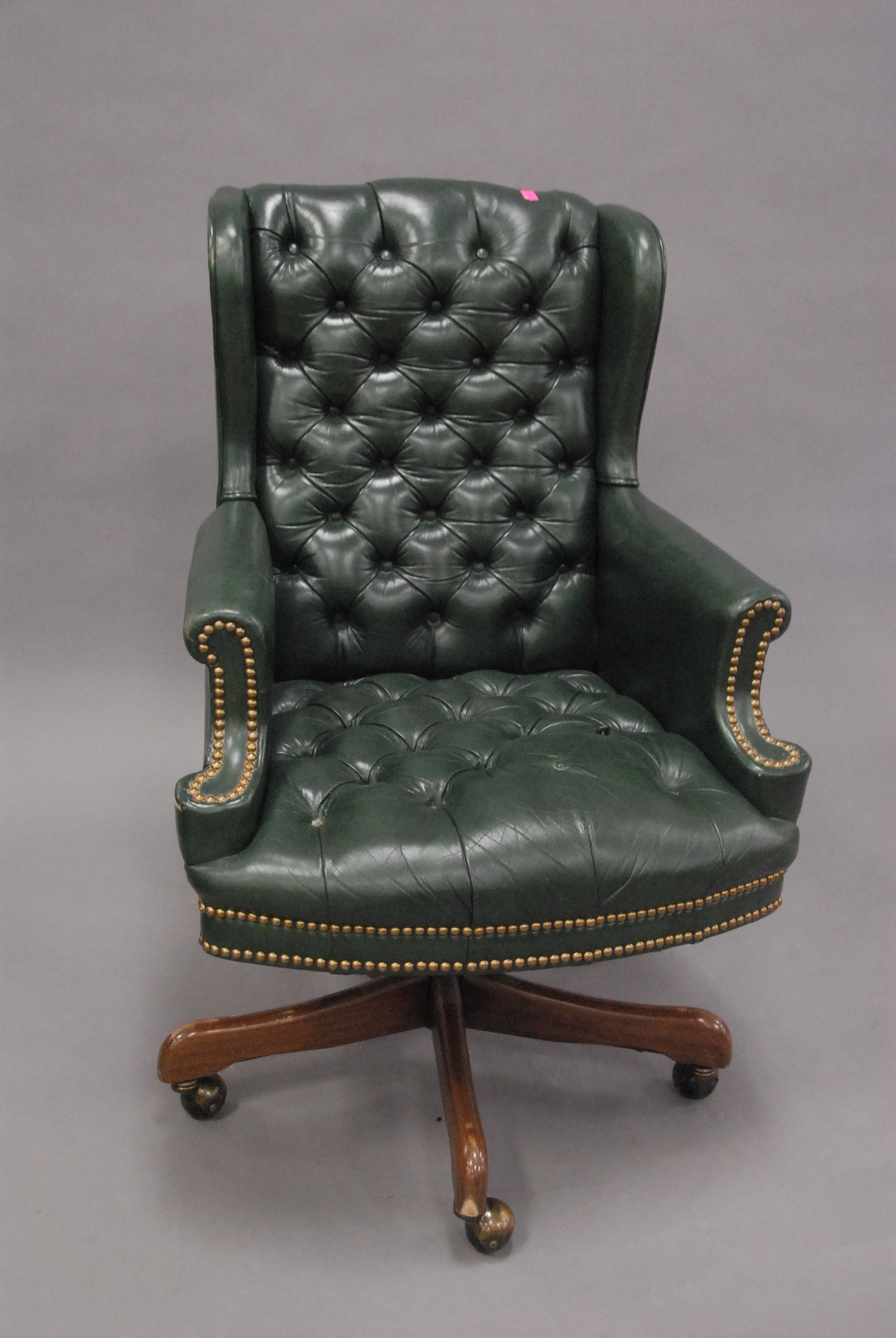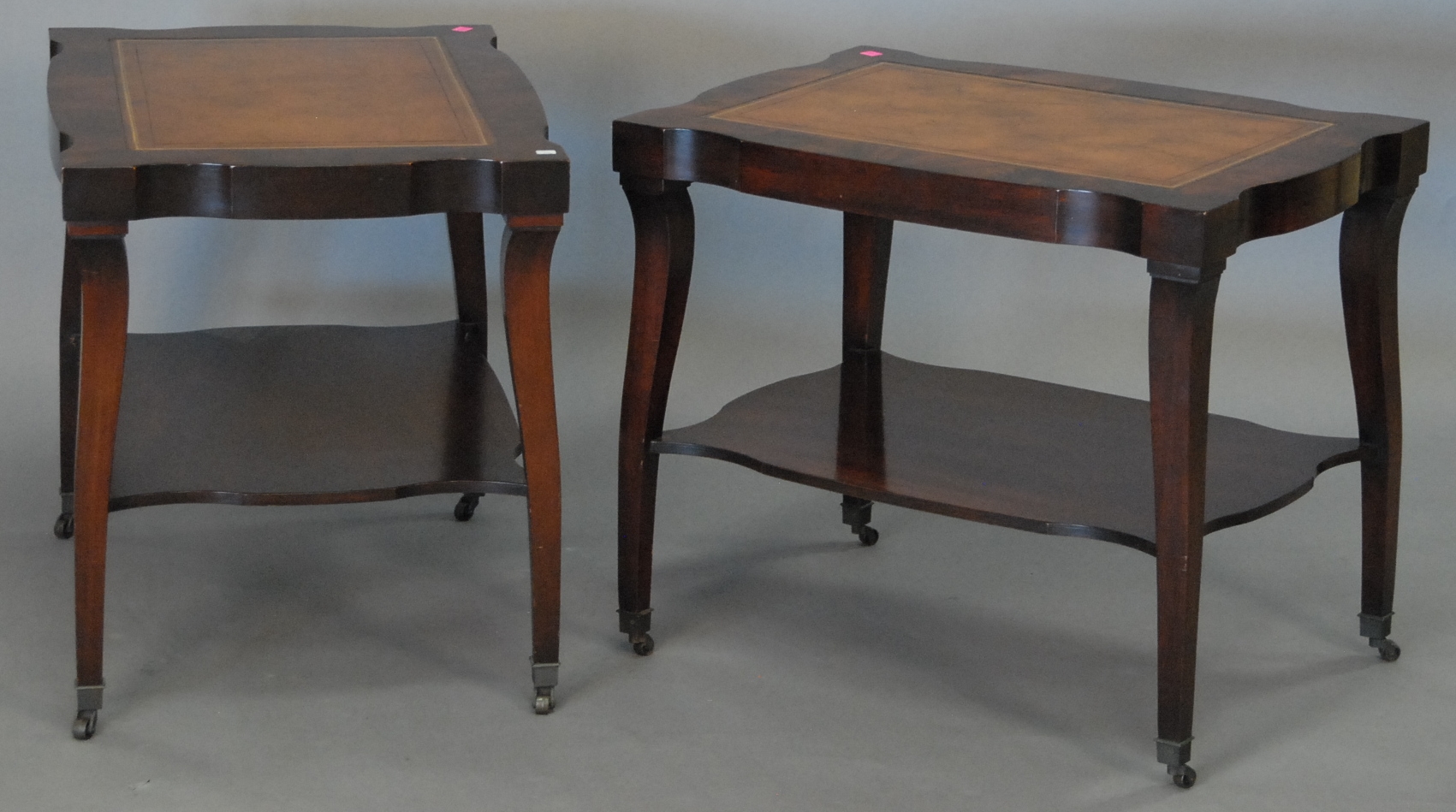 Pair of mahogany leather top side tables, ht. 23, wd. 27.