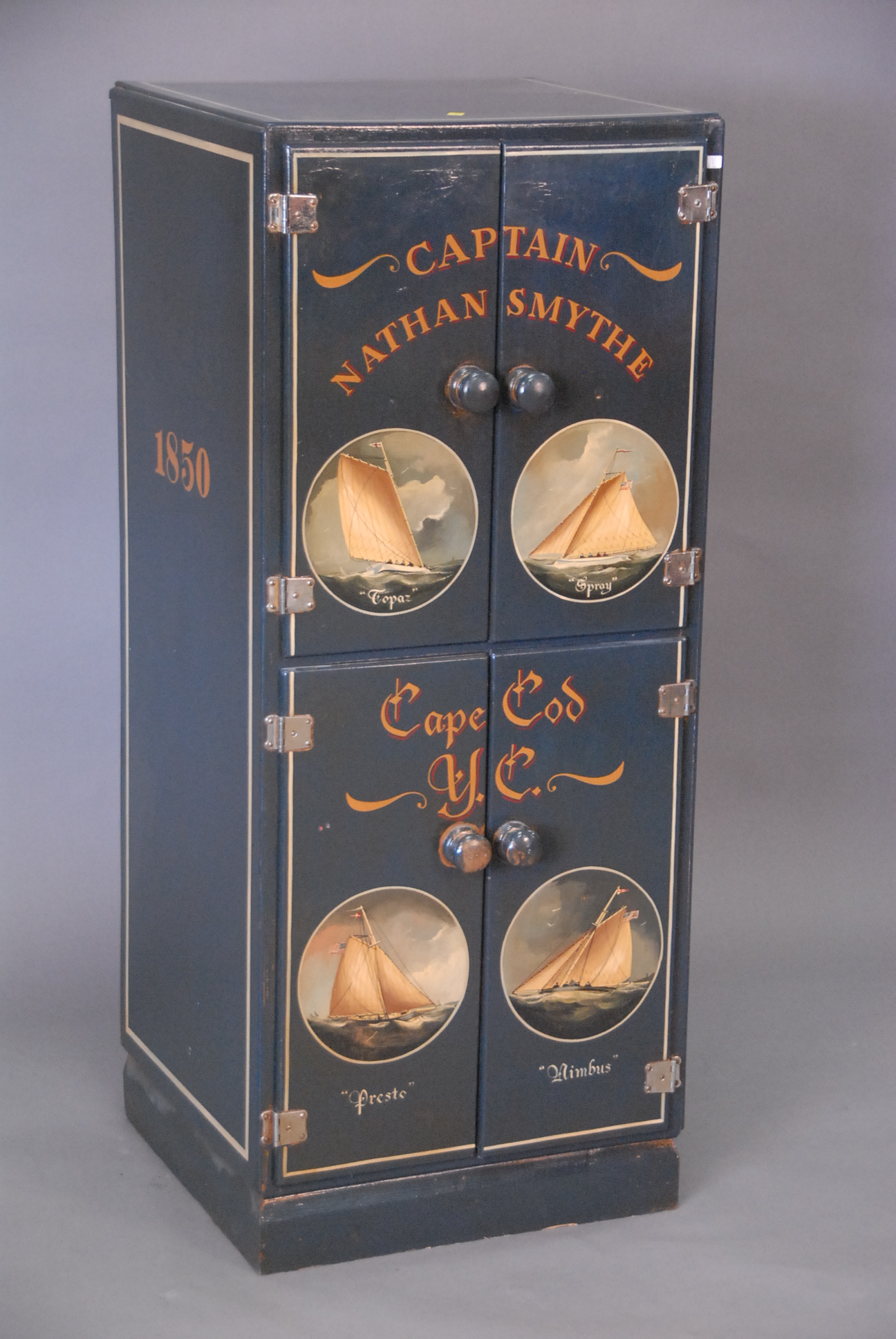 Paint decorated cabinet with four doors, ht. 51 in. wd. 21 in. dp. 20 in.