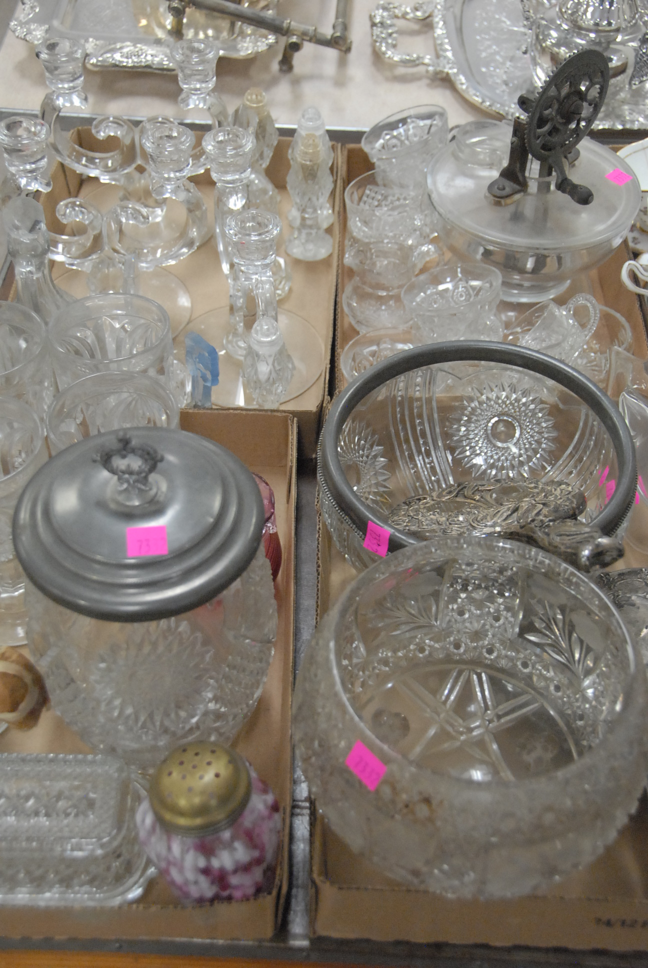 Five box lots of clear glass and colored glass to include sterling weighted mirror, candlesticks, stems, bowls, vases, etc.