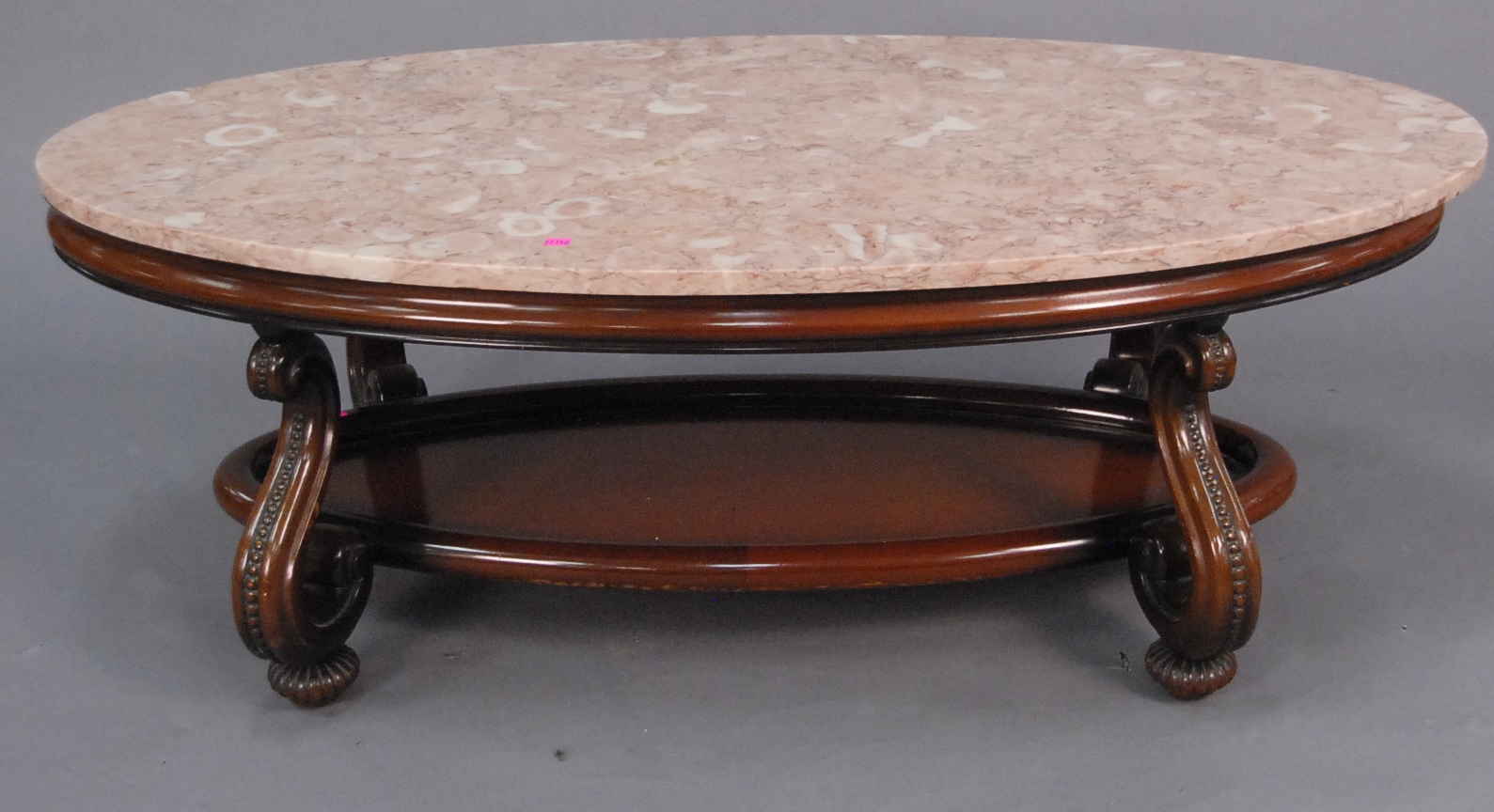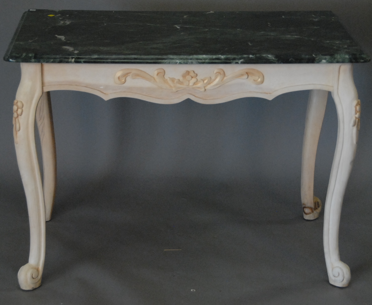 Louis XV style marble top table, ht. 30 in. top: 26 x 42.