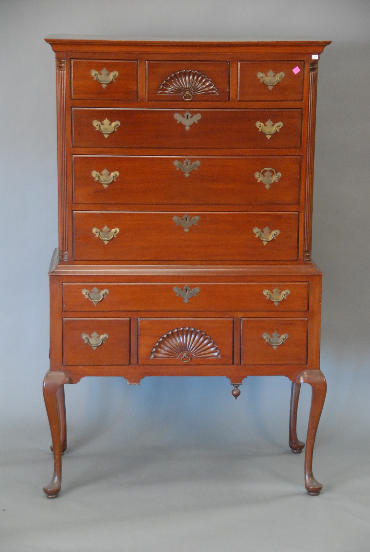 Custom mahogany flat top highboy in two parts, ht. 60 1/2 in. wd. 36 in.