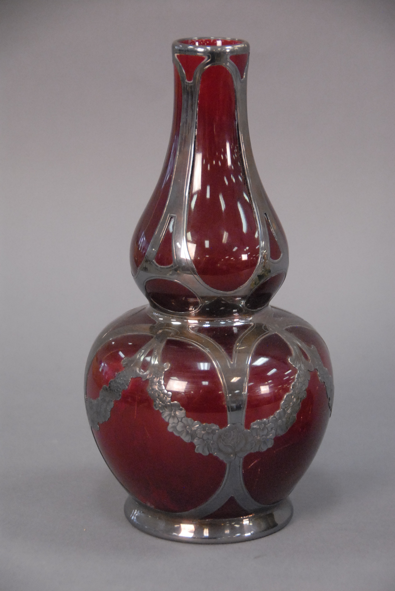 Royal Doulton flambe silver overlay vase, ht. 10 in.