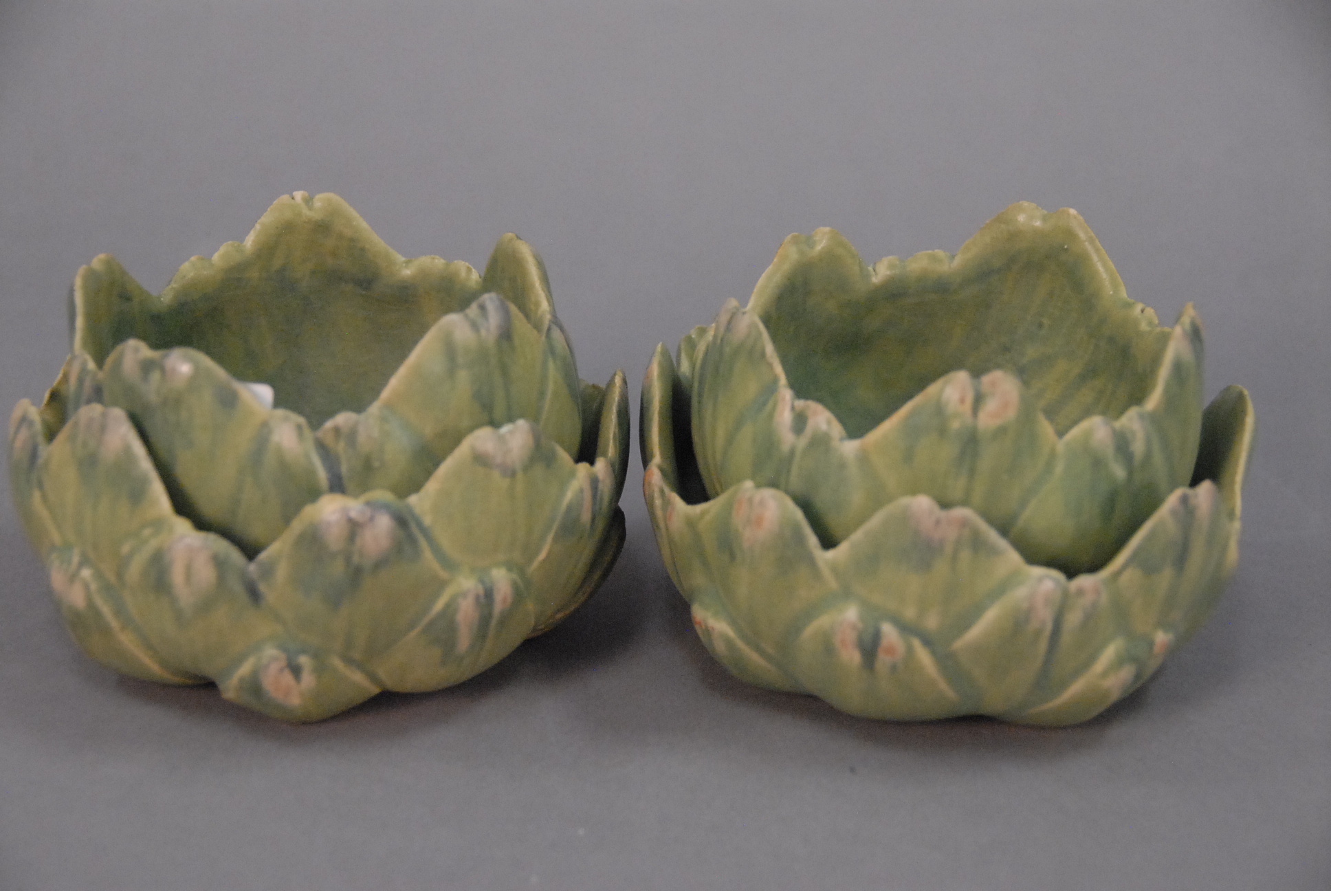Pair of Patricia Garrett artichoke bowl vases, ht. 3 in. dia. 4 1/2 in.