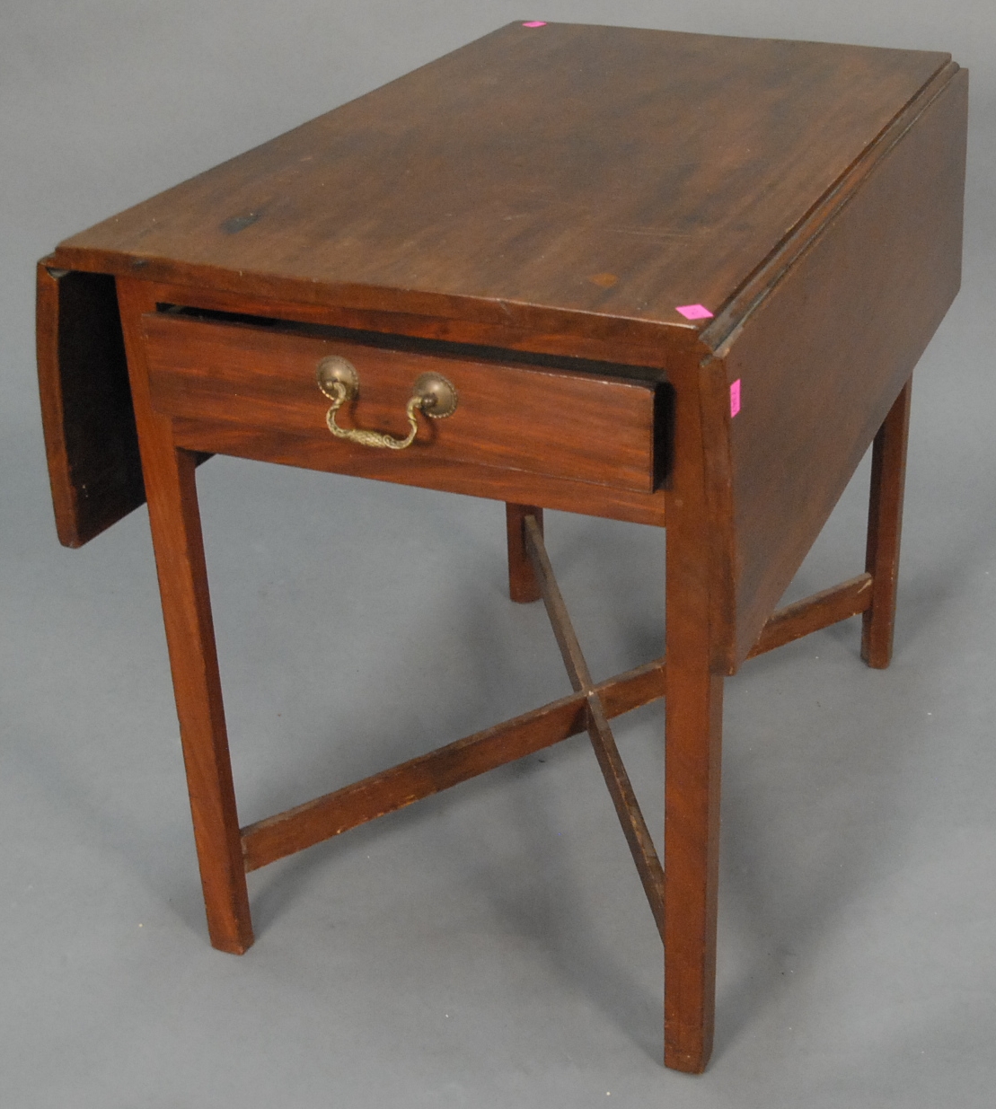 Chippendale mahogany drop leaf table with drawer and X stretcher base, circa 1780, ht. 26 in. 18 1/2 x 21 1/2.