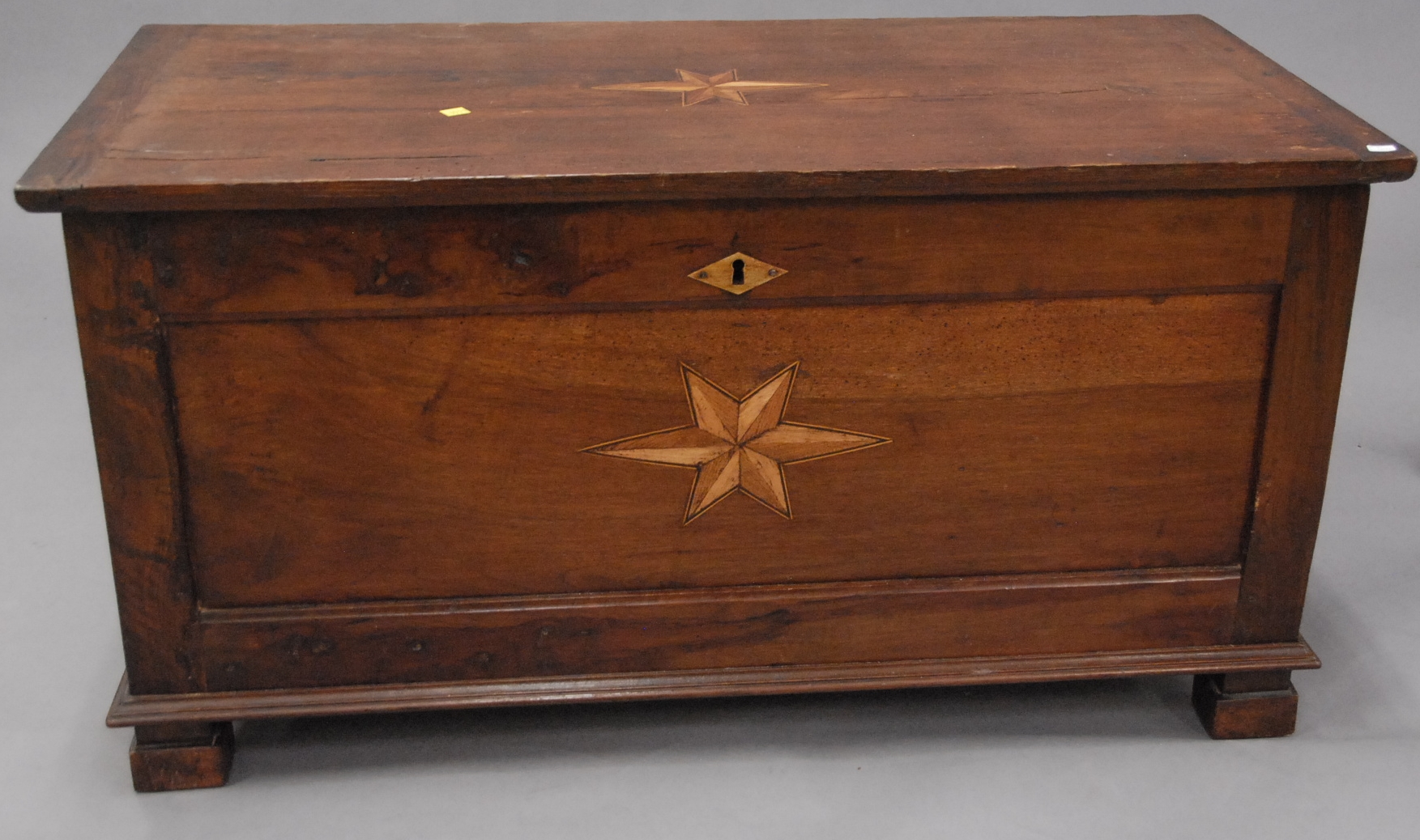 Lift top chest with star inlay, ht. 21 in. wd. 41 in.