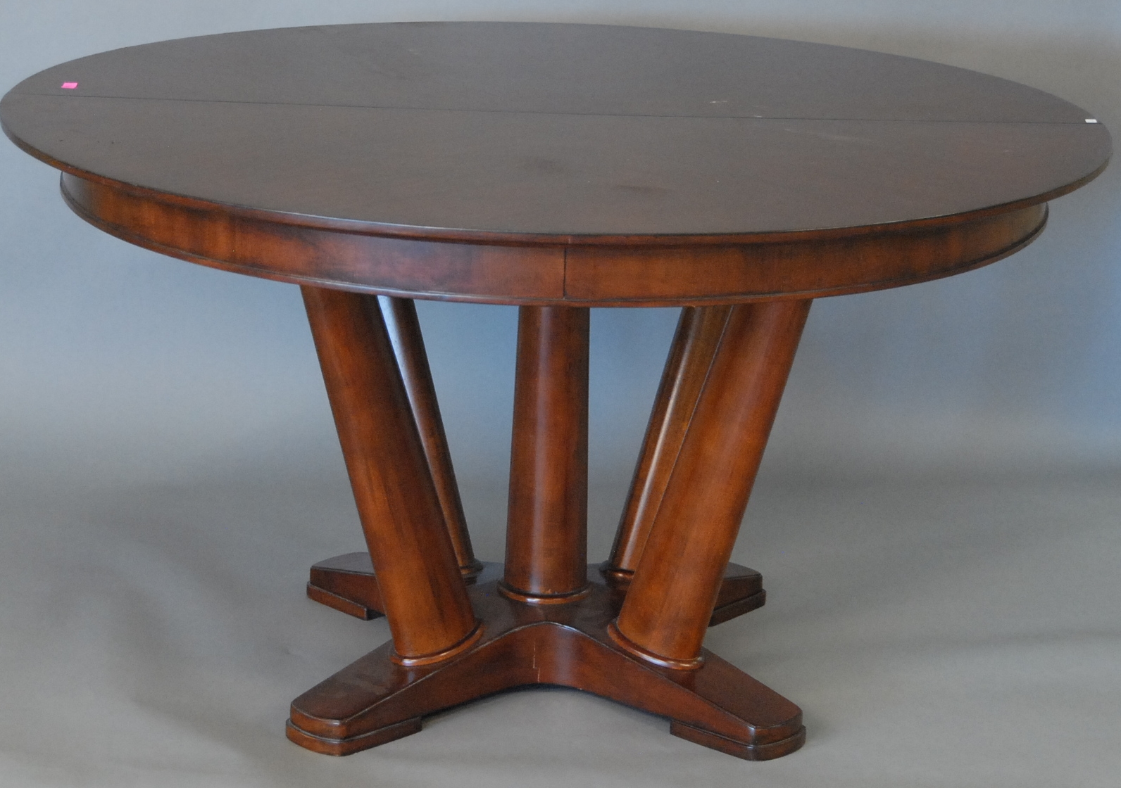 Mitchell Gold & Bob Williams mahogany round pedestal table with one 22 leave, ht. 31 in. dia. 56 in.