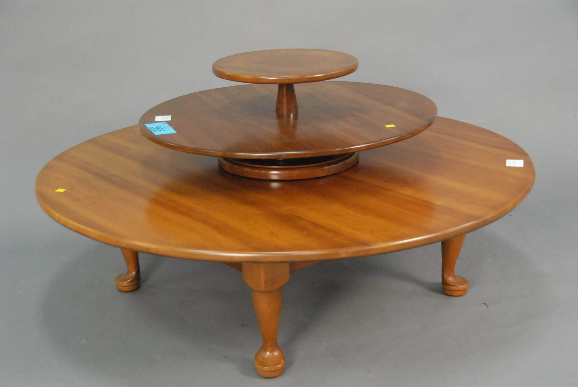 Stickley cherry coffee table and two tier lazy susan, each signed Stickley, dia. 48.