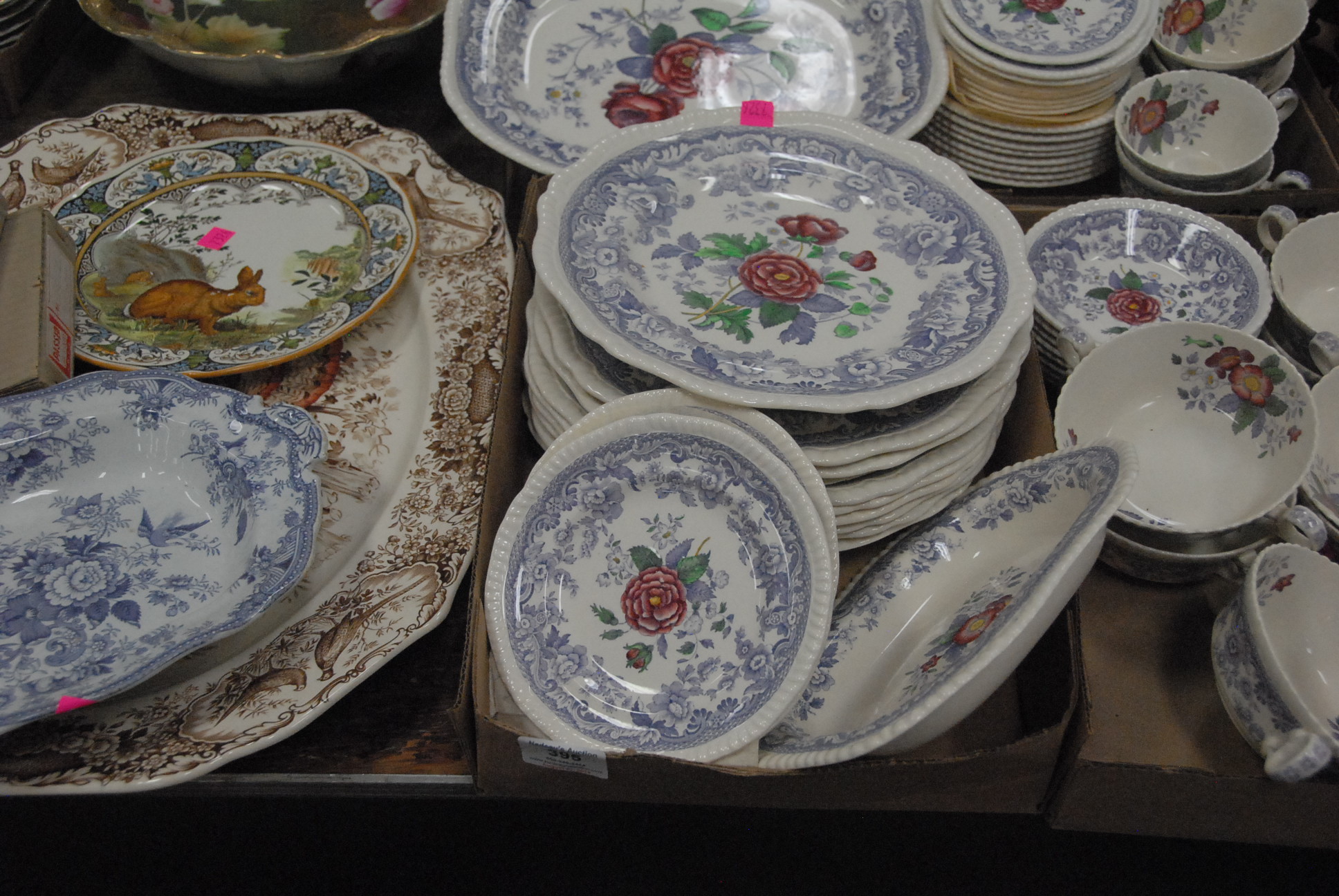 Set of Copeland Spode Mayflower china, large turkey platter, and Wedgwood rabbit platter.