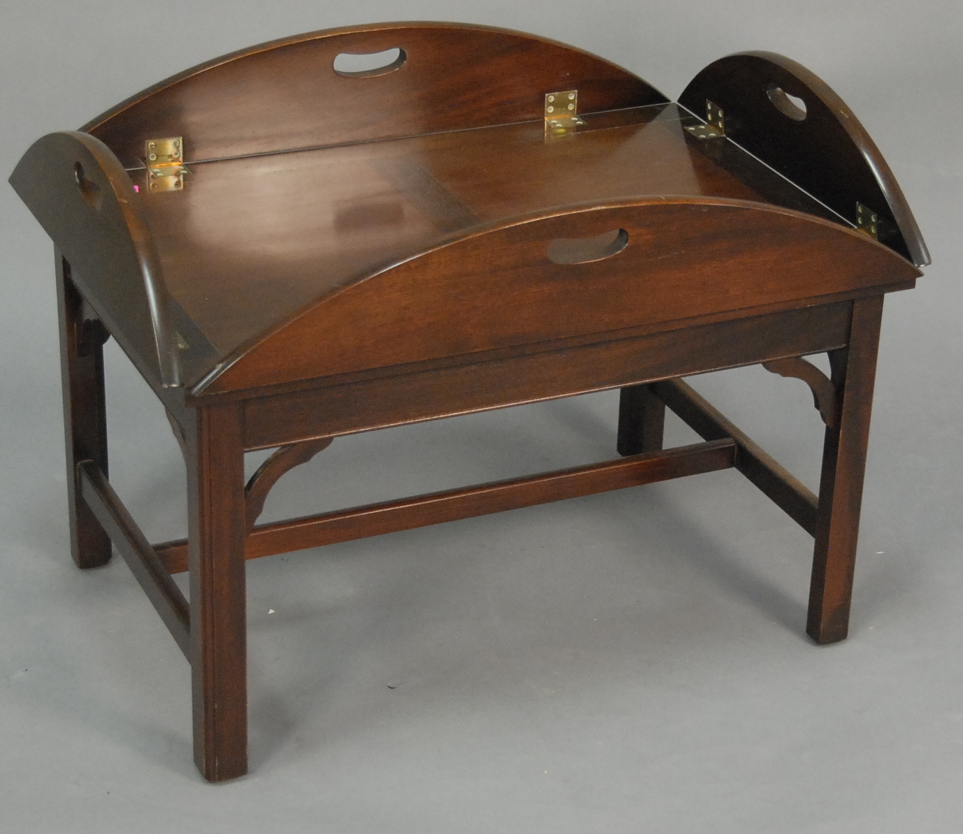 Mahogany tray top coffee table, ht. 17 in. top: 31 x 40.