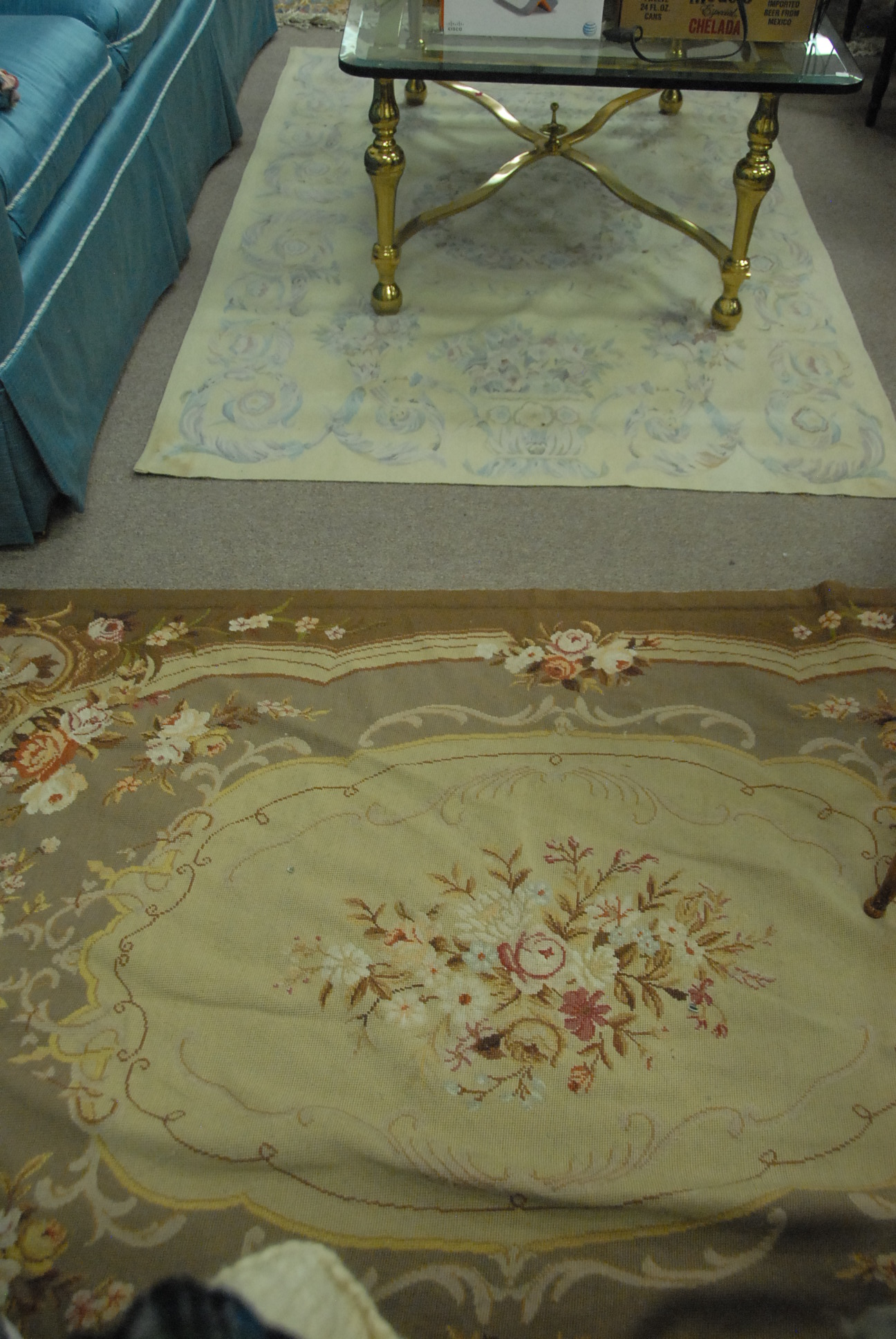 Two throw rugs to include one tapestry 3’11 x 6’3 and one needlepoint 3’9 x 5’9.