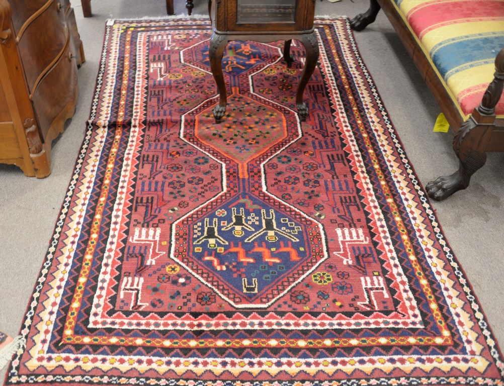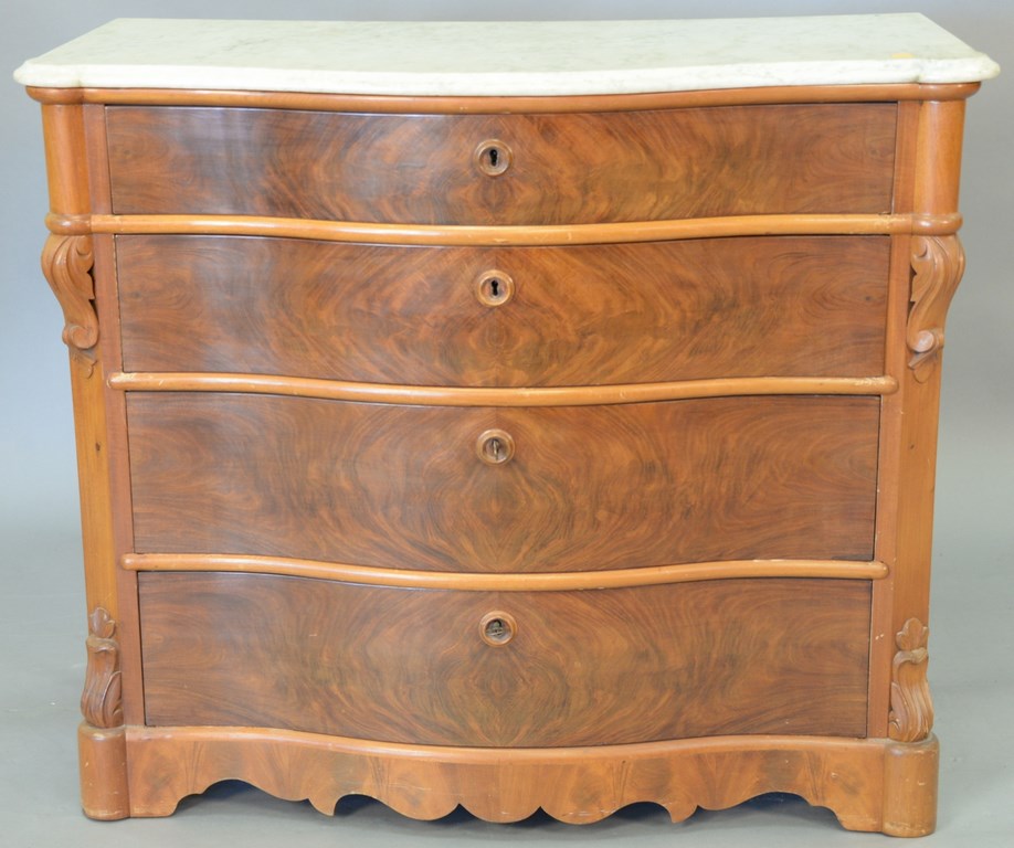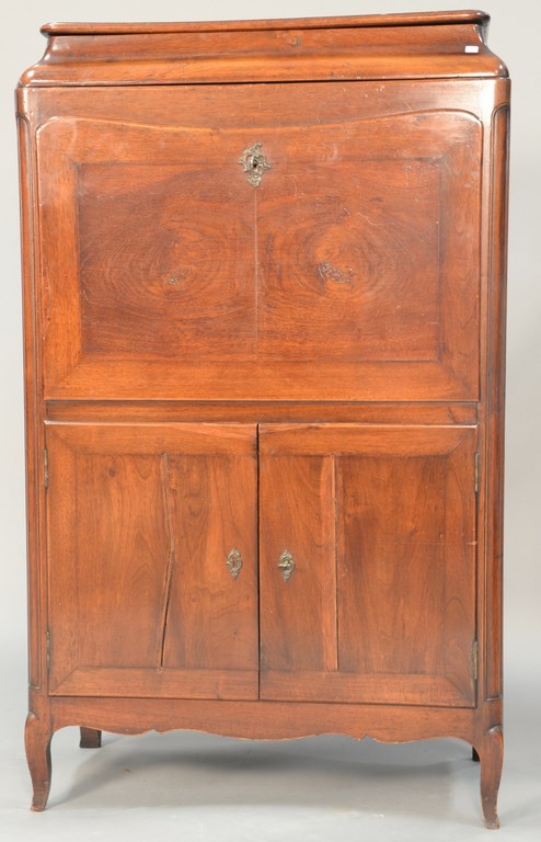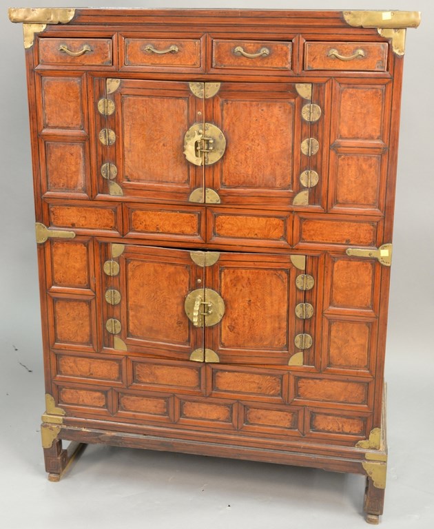 19th century Oriental burl walnut cabinet having four drawers and two double doors on base, probably 18th century, bottom interior shelf missing. ht. 56 in. wd. 42 in.