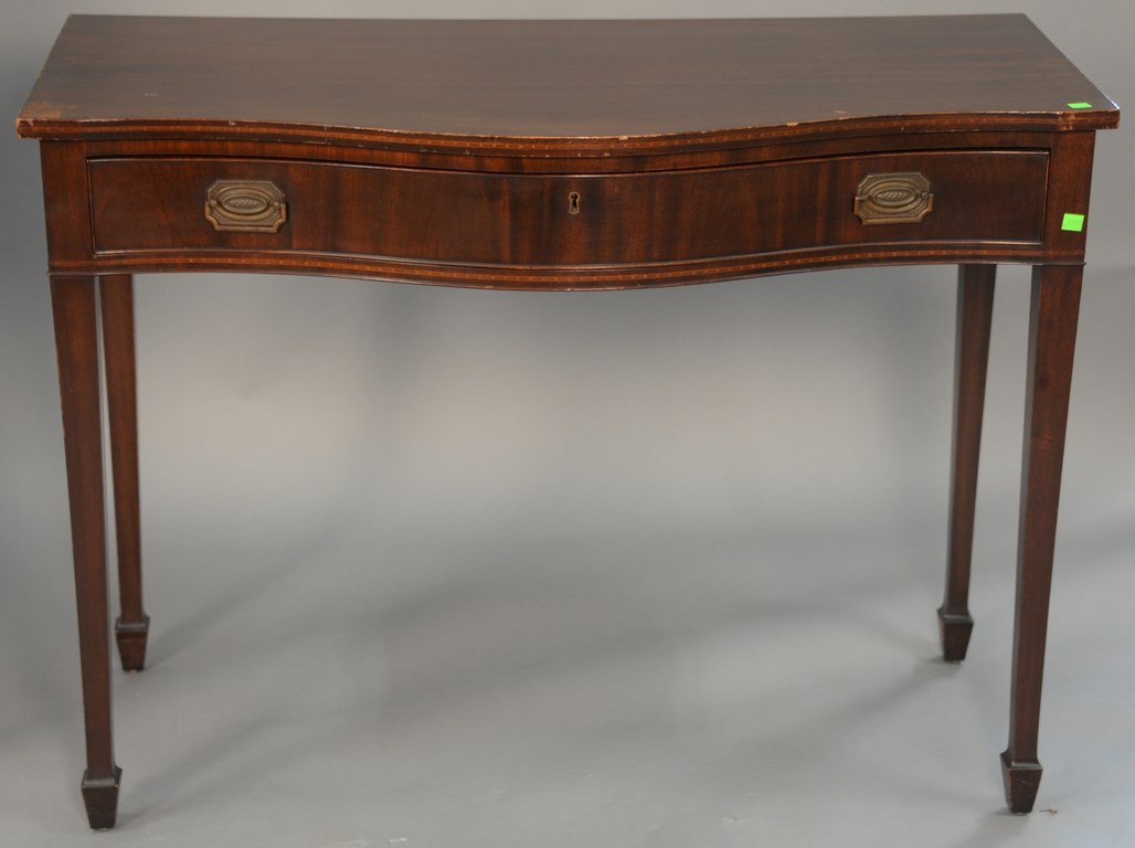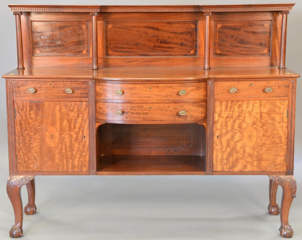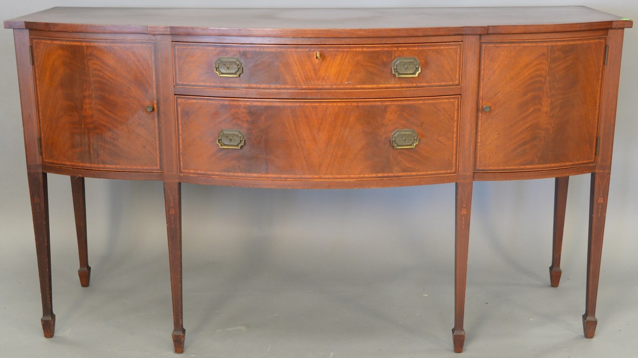 Margolis custom mahogany Federal style sideboard with two drawers and two doors, top drawer fitted with silverware separation, signed on back. ht. 37 1/2 in. wd. 66 in. dp. 24 in.